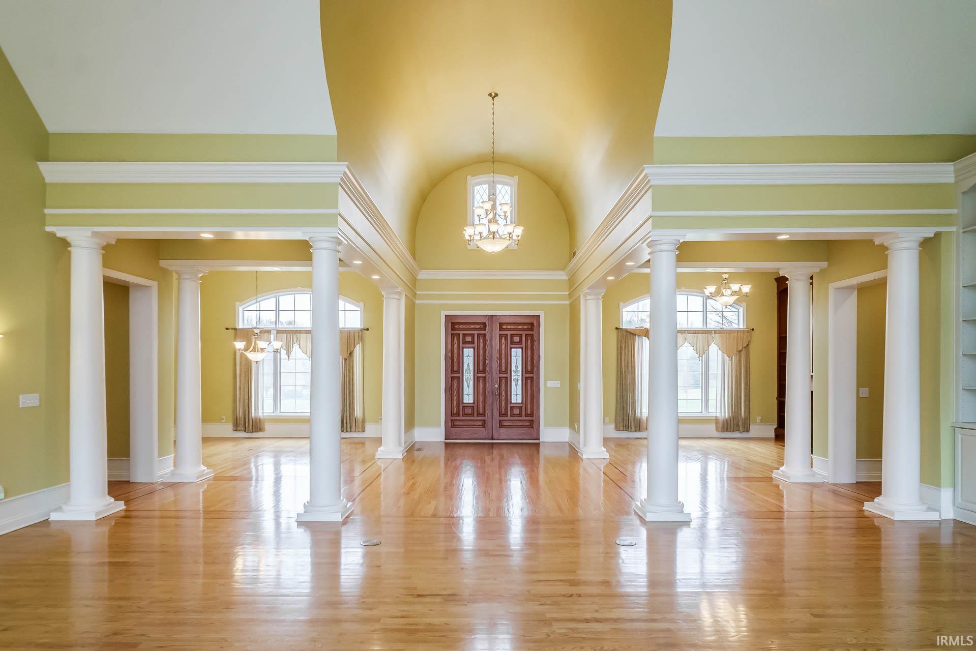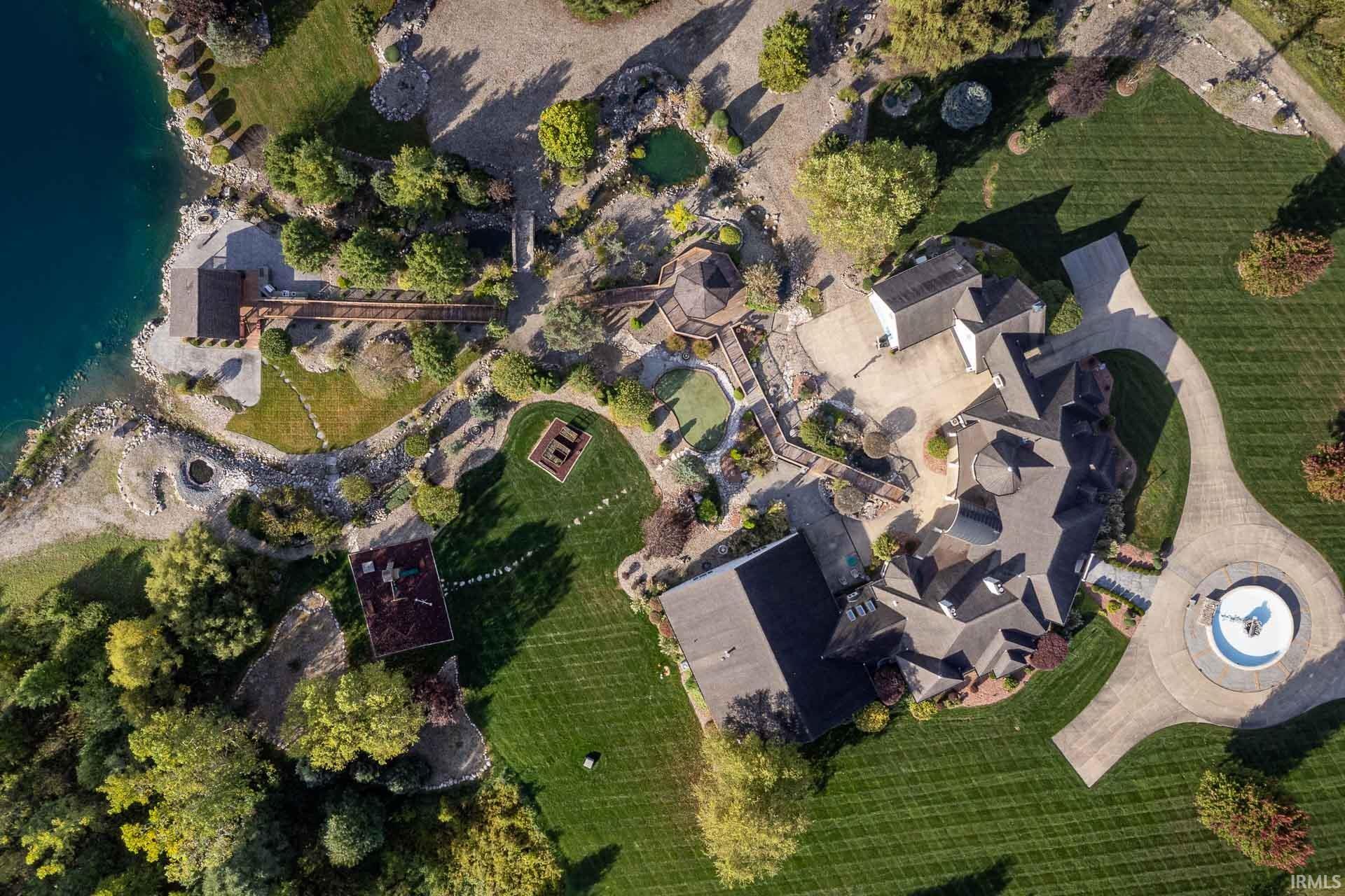 Discover this extraordinary custom-built estate set back on 20 private acres with a lake. This home offers an extensive list of luxury amenities, including five ensuite bedrooms, five fireplaces, an indoor pool complex, a golf simulator area, and even a duckpin bowling alley. The main level welcomes you with vaulted ceilings, natural light, rich wood flooring with inlay detail, custom built-ins and beautiful arches. Four main-level ensuite bedrooms include a spa-like primary suite with steam shower, jetted tub, double-sided fireplace, and massive walk-in closet. The kitchen is designed with serious cooking in mind and includes a Sub-Zero refrigerator, Viking double ovens with warming drawer, JennAir gas cooktop and sunny eat-in breakfast area. The lower level includes a variety of recreation spaces, including a billiards area, salon with full bath, exercise room, sunken media room with coffered ceilings, and kitchenette. Don’t forget to check out the bowling alley! The upper level offers a beautiful sunlit bonus room, beverage area, and a fifth ensuite bedroom with its own sitting room and private entrance from the garage. A rare indoor pool wing features a plaster pool with 9ft deep end, diving board, sauna, changing rooms, and golf simulator with 10-ft ceilings, making this entire wing feel like your own private wellness retreat. The retreat-like feel extends outside with a stocked 2.5-acre lake, a pavilion, a gazebo, a putting green, and room to roam. Additional perks include a 4-car heated garage, irrigation system, long tree-lined drive, and beautifully manicured grounds.