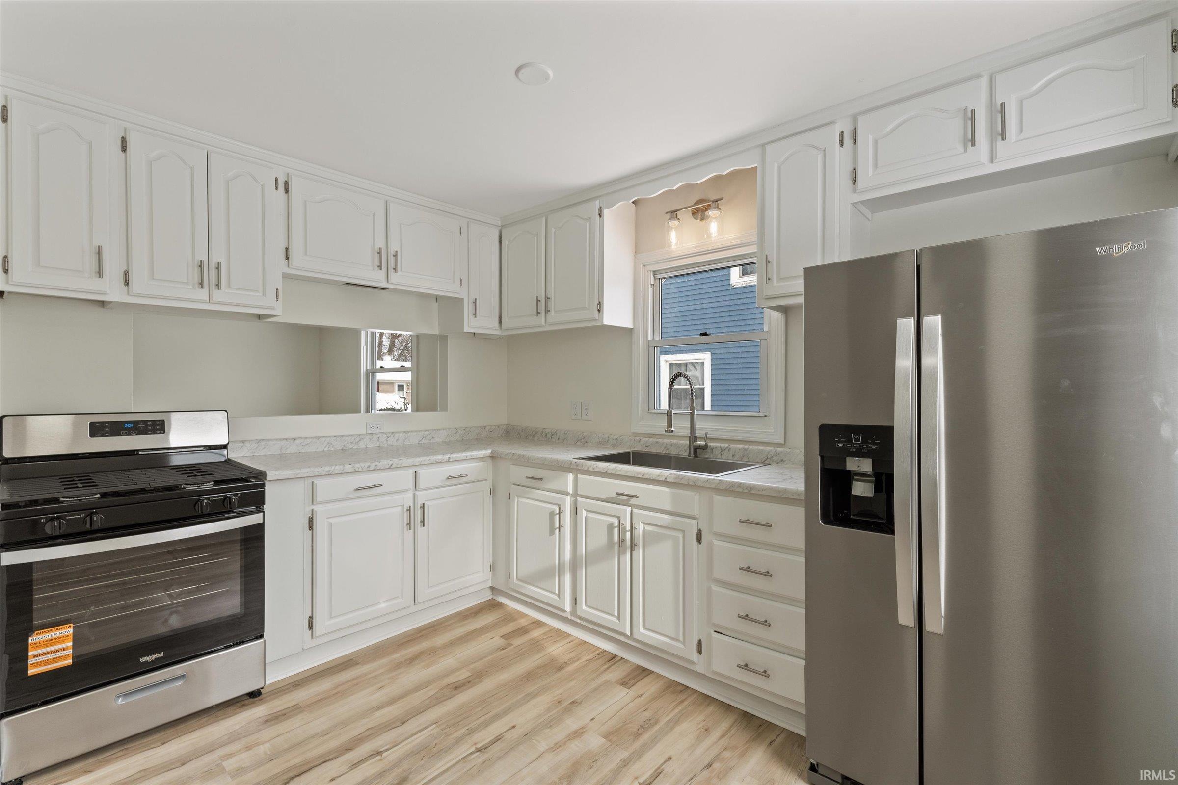 Beautifully updated 4 bedroom home with extensive renovations throughout. Move right into this fully refreshed home offering modern updates from top to bottom. The home features a brand new roof, freshly repaired and repainted kitchen cabinets, new countertops, new sink and faucet, and all new stainless steel appliances. Enjoy low-maintenance living with new LVP flooring in the main living areas and new carpet in all bedrooms and stairs. The interior has been completely revitalized with full drywall repairs and fresh paint throughout. Both bathrooms have been updated with new vanities and toilets, along with tub-area repairs on the main level. Window panes have been replaced with new glass for improved efficiency and clarity. This home also offers significant mechanical and finish upgrades: new light fixtures, updated outlets and switches, new interior doors and hardware, new locks, a newly installed washer box, and extensive exterior improvements including siding, trim, soffit/fascia, concrete, steps, and power washing. To top it off the garage door opener has been replaced for added convenience and peace of mind. With its long list of recent updates, this home is truly move-in ready, perfect for buyers seeking stye, comfort, and value.