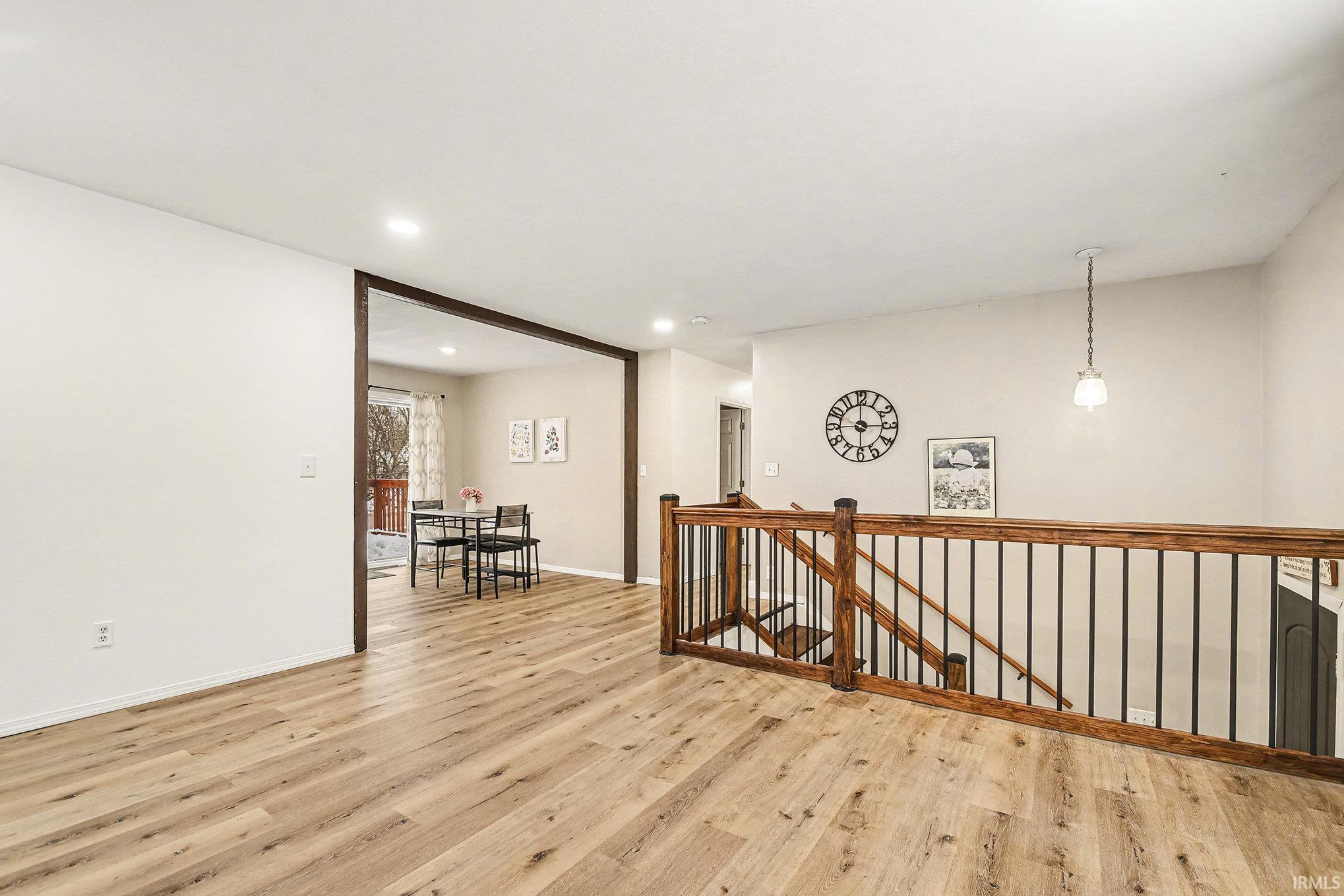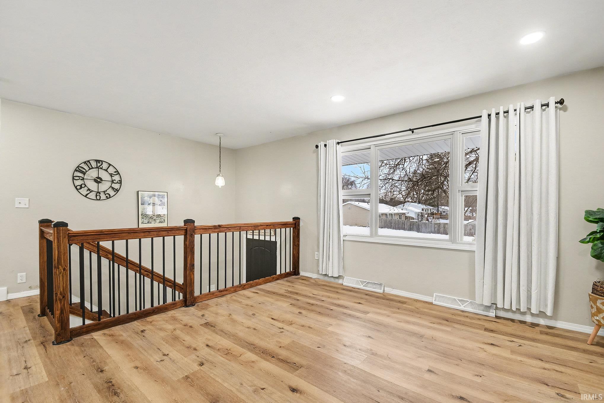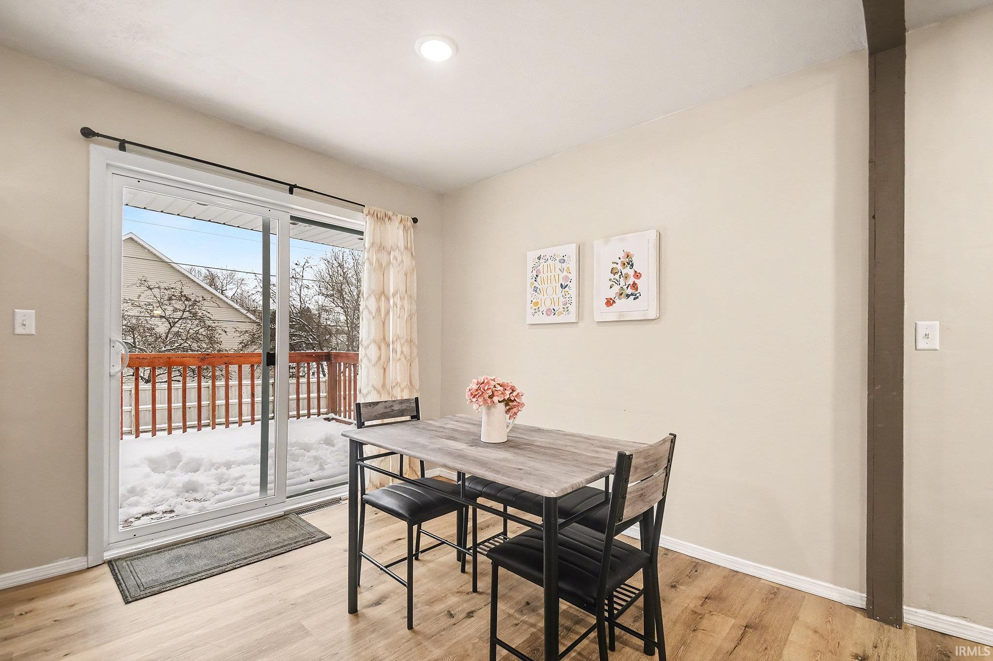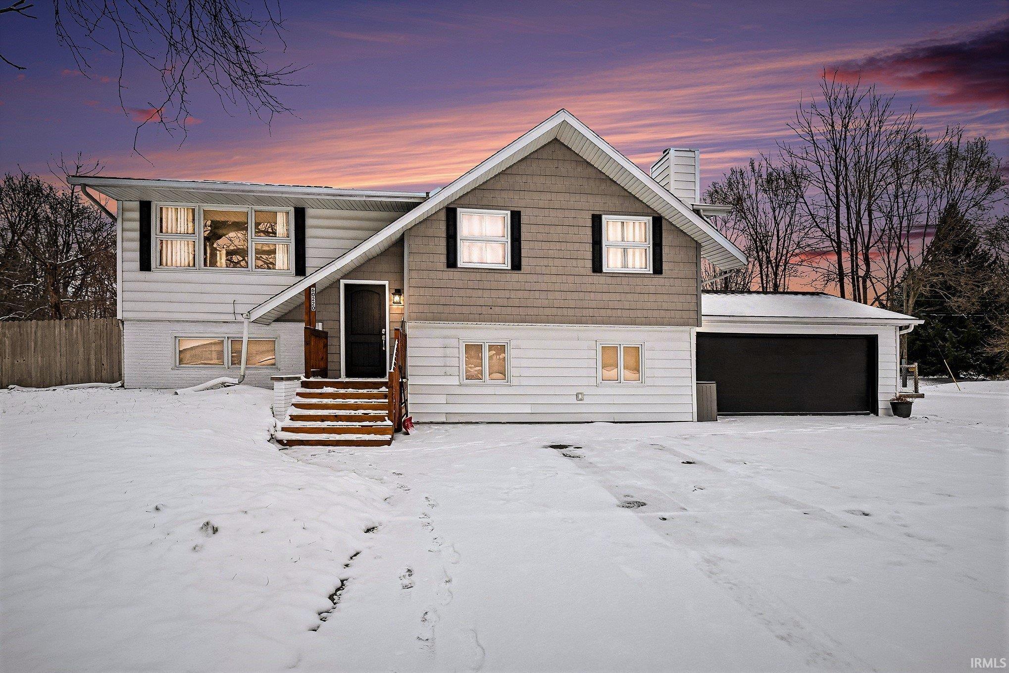 Welcome to this beautifully updated and spacious home located on the south side of South Bend. Nestled in a peaceful rural setting yet conveniently close to shopping, restaurants, the bypass, St. Joseph County Fairgrounds, and just a short drive to the University of Notre Dame - this location truly offers the best of both worlds. Situated on a large corner lot, the home boasts excellent curb appeal with a charming front porch that has been newly stained. Inside, the upper level features a bright and open floor plan with abundant natural light, a generous living area, a dining space, and a modern kitchen complete with brand-new stainless steel appliances and access to a back deck - perfect for entertaining. Also on this level are three spacious bedrooms and a beautifully updated full bathroom, all complemented by new luxury vinyl flooring throughout. The main level offers additional living space, a full bath with brand new shower, fireplace, and laundry area. Step out back to enjoy a fully fenced yard, with another newly stained deck, and an oversized shed for extra storage. Don't miss out on this opportunity to make this turn-key home yours!