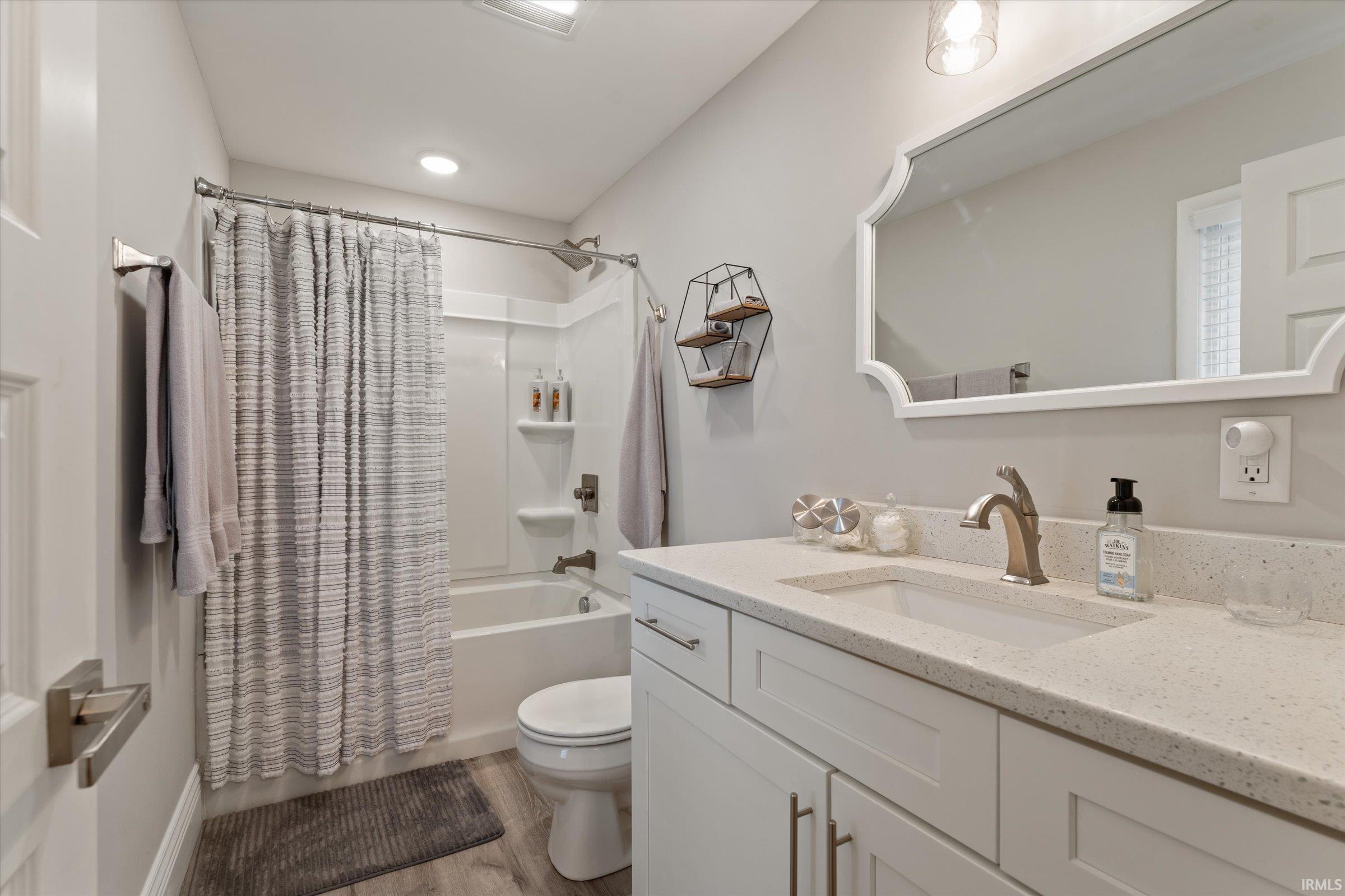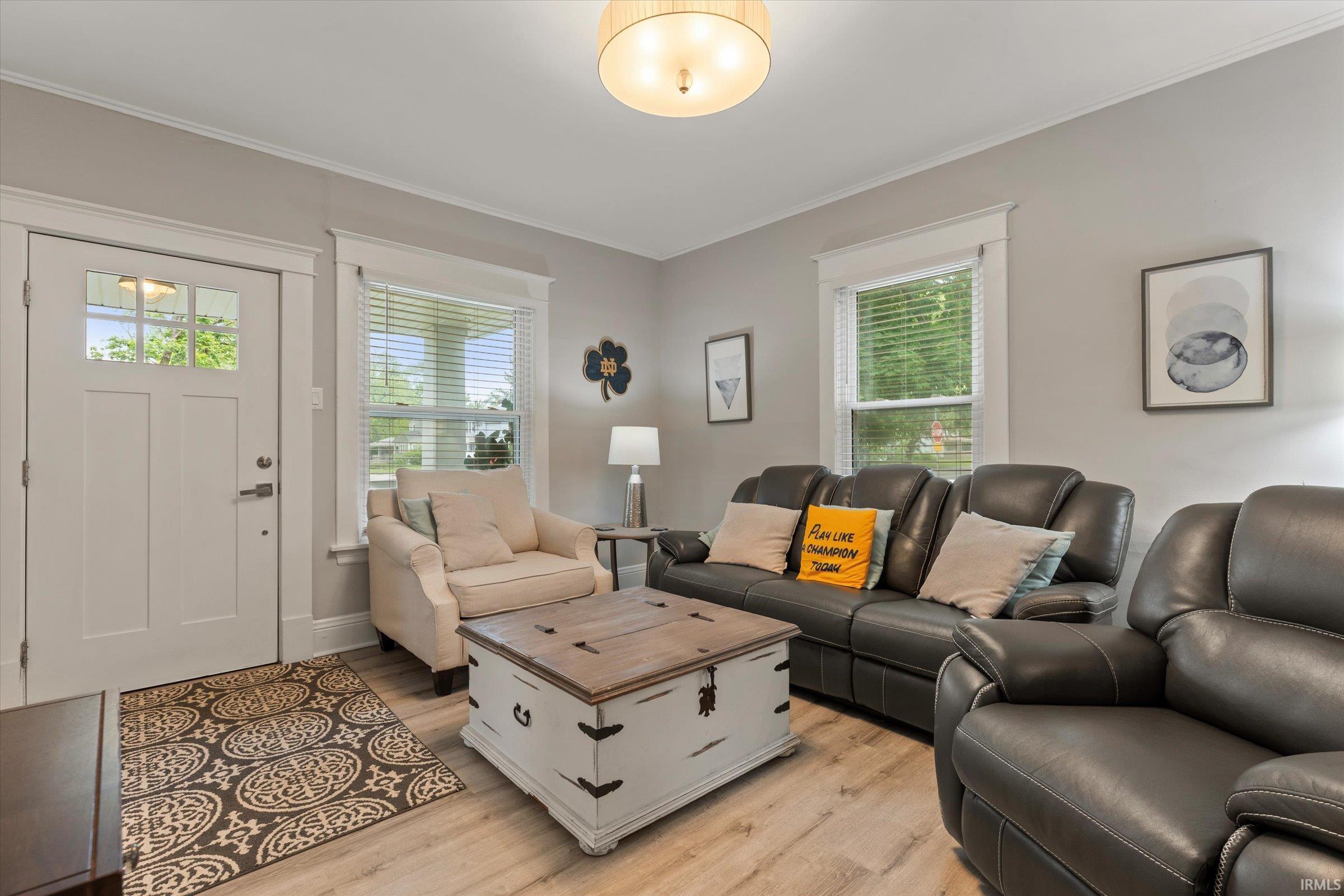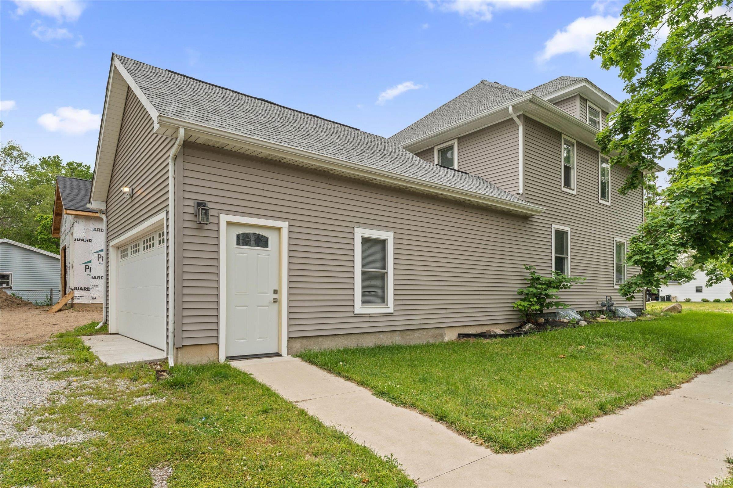 You won’t believe this stunningly renovated American Foursquare in South Bend’s Harter Heights, steps from downtown and a major university. You will love the charming front porch, it sets the tone for this exceptional home. Inside, gorgeous plank flooring flows from the living room to a modern eat-in kitchen, complete with custom shaker cabinetry, stone countertops, a custom tile backsplash, and stainless steel appliances. The master bedroom features a generous closet and a luxurious en-suite bathroom with a modern vanity, sleek fixtures, and a custom-tiled walk-in shower. Every detail shines, from the convenient main-floor laundry and beautifully updated 2½ bathrooms. This move-in-ready gem, ideally located, is a rare find. Don’t miss out—schedule your showing today!