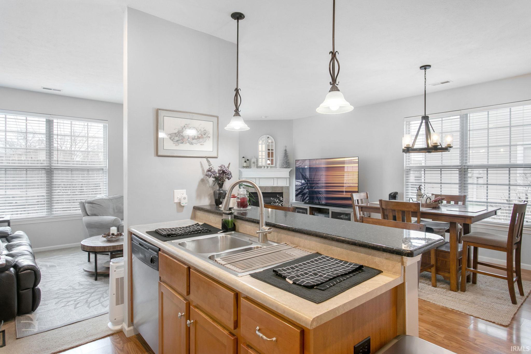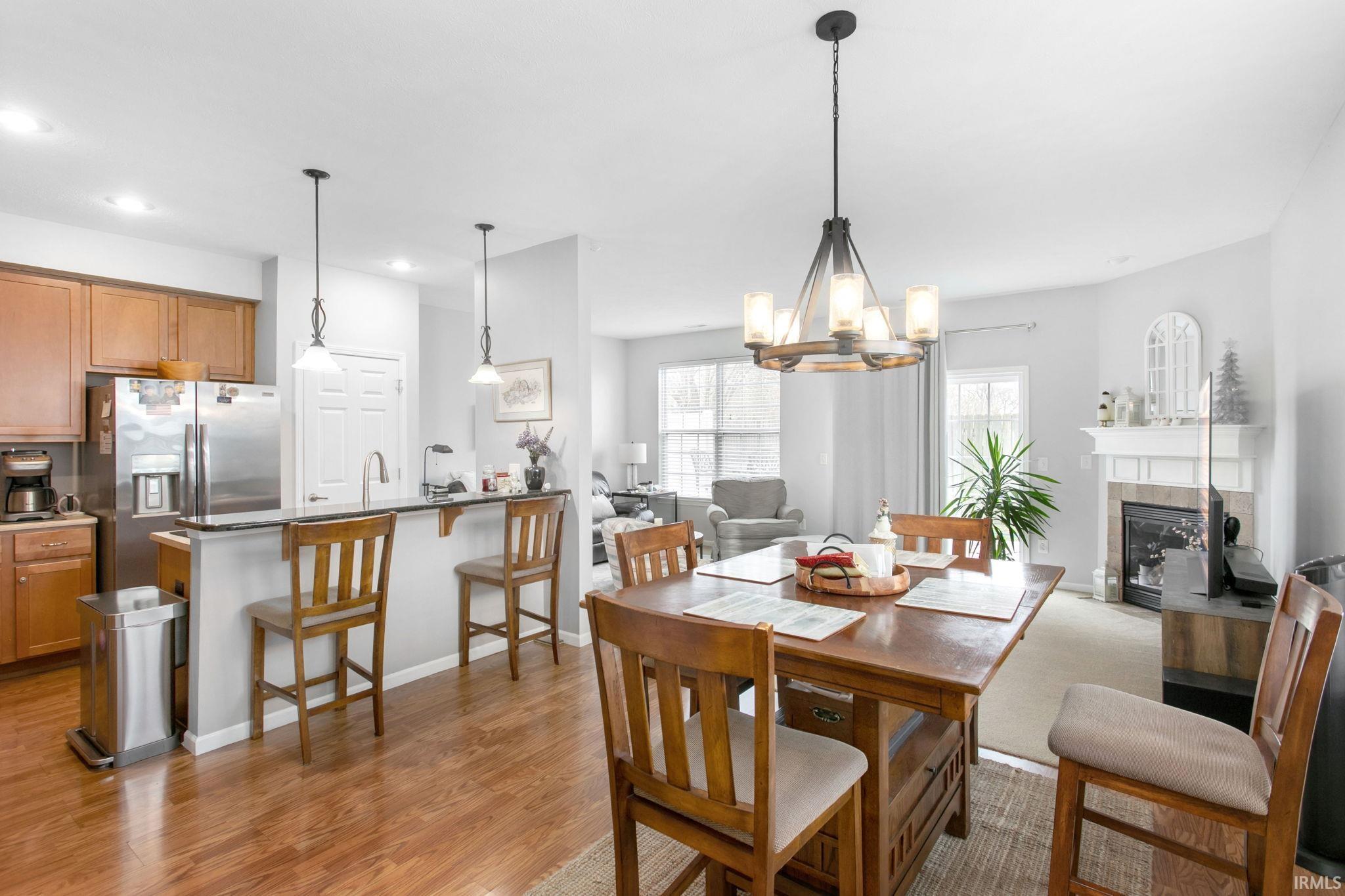 Spacious, well-maintained end-unit townhouse offering 3 bedrooms, 2.5 baths, a loft, and a gas fireplace. Features include an enormous primary suite with French doors and walk-in closet, oversized patio with natural-gas grill hookup, beautiful landscaping, and a large driveway with parking for up to 6 cars, plus a 2-car garage equipped with an EV charger. Recent upgrades include a brand-new HVAC system, Ecobee smart thermostat, newer water heater, washer/dryer, and updated fixtures throughout. Located within walking distance to University of Notre Dame, shopping, and just minutes from the airport. HOA covers all exterior maintenance, landscaping, and snow removal. All furnishings, including patio furniture, grill and all appliances are included in the sale, making this a fully turnkey opportunity for an owner-occupant or investor.