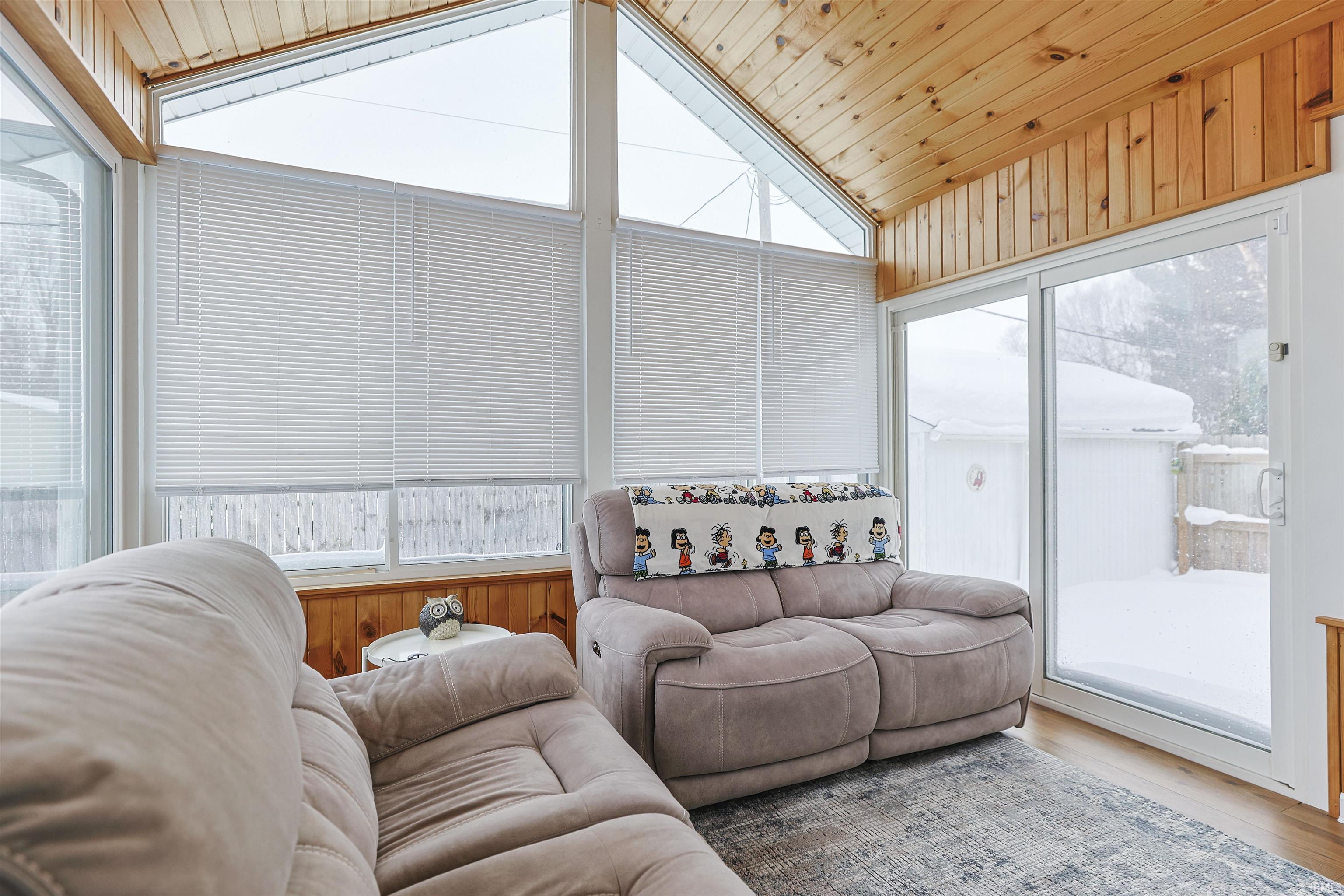 Fantastic curb appeal welcomes you to this sharp ranch w/classic brick accents and easy-care landscaping featuring simple river rock. Inside, enjoy a great-room layout with spacious, light-filled rooms throughout. The awesome kitchen shines w/white cabinetry, granite counters, and a custom storage area offering a pantry plus additional counter space. Quality tiled flooring continues through the convenient main-floor laundry. Matching granite lavatory tops add a polished touch, and all appliances stay including new Insta-view refrigerator, 5 burner stove plus a Maytag washer and dryer. 3 spacious bedrooms with the primary suite offering a walk-in closet, vaulted ceiling, and a private bath with shower. The lower level is huge and ready to finish, with vapor barrier walls, ductwork, and electrical already completed. Bright sunroom with planked walls, vaulted ceiling, and abundant windows overlooking the sparkling pool is comfortable with a wall A/C unit—perfect for relaxing or entertaining. Additional highlights include a high-efficiency Lennox furnace, new central A/C and a shed for extra storage. Privacy-fenced yard with front gates for easy access. Culligan water filtration system is rented. This home is move-in ready and full of charm—inside and out. Avg gas $126 electric $133, trash/water $150. Buyer to verify schools, taxes and dimensions.