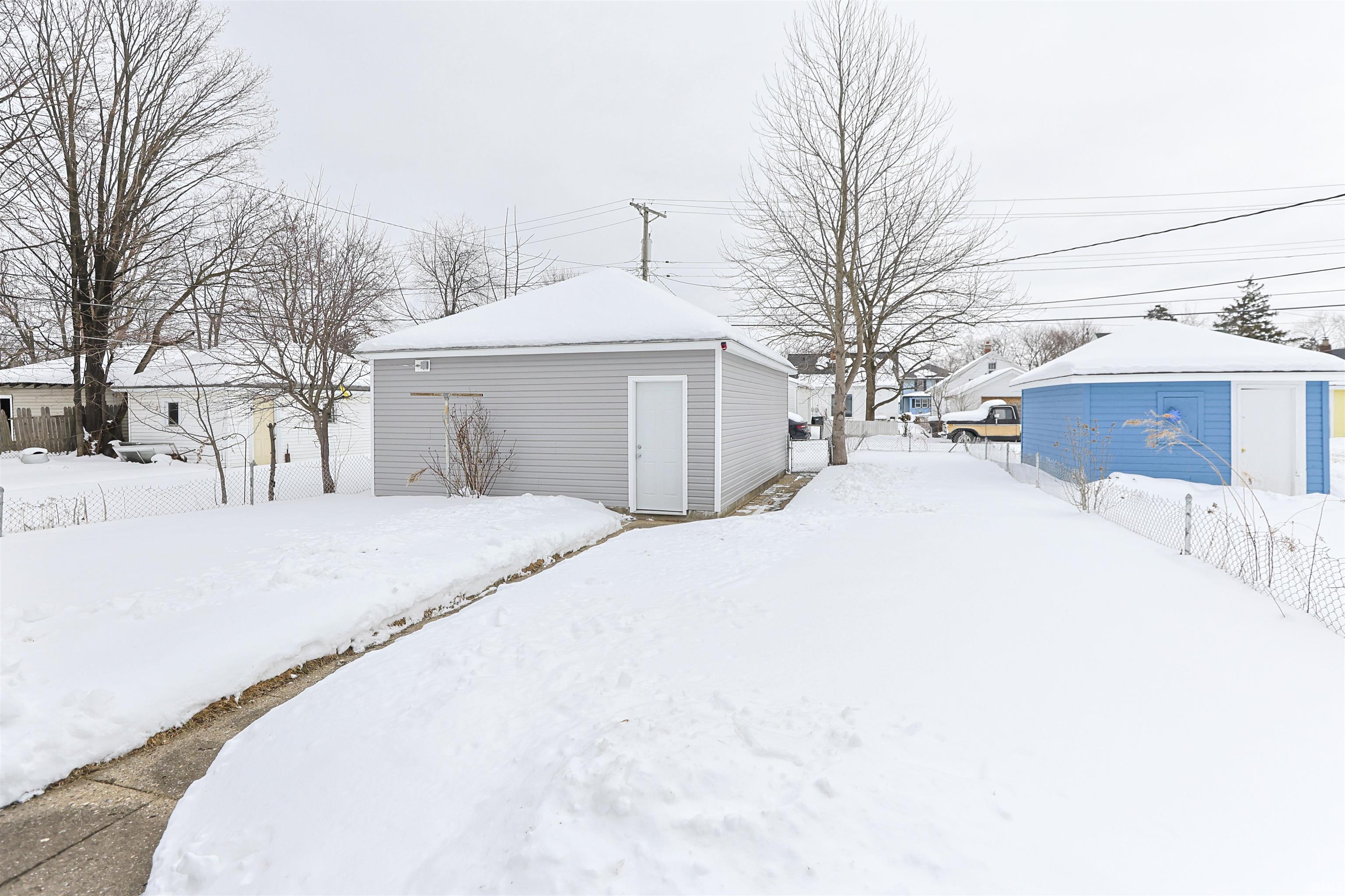 Welcome to this beautifully remodeled, like-new construction home that blends modern comfort with timeless charm. Offering two bedrooms and one stylish bath, every inch has been thoughtfully updated. Enjoy abundant natural light pouring in through all-new windows, highlighting fresh paint, new doors, trim and brand-new flooring throughout. The completely new kitchen shines with modern finishes and lighting, while the newly updated bathroom feels so fresh and so clean. Stay comfortable year-round with new central air and updated systems. Outside, relax on the inviting screened-in front porch or enjoy the privacy of a fully fenced yard—perfect for entertaining, pets, or quiet evenings at home. A large two-car detached garage provides ample storage and workspace. With new siding, new lighting, and quality upgrades from top to bottom, this home truly feels brand new. Move-in ready and worry-free, this is a rare opportunity to own a turnkey property that checks every box.