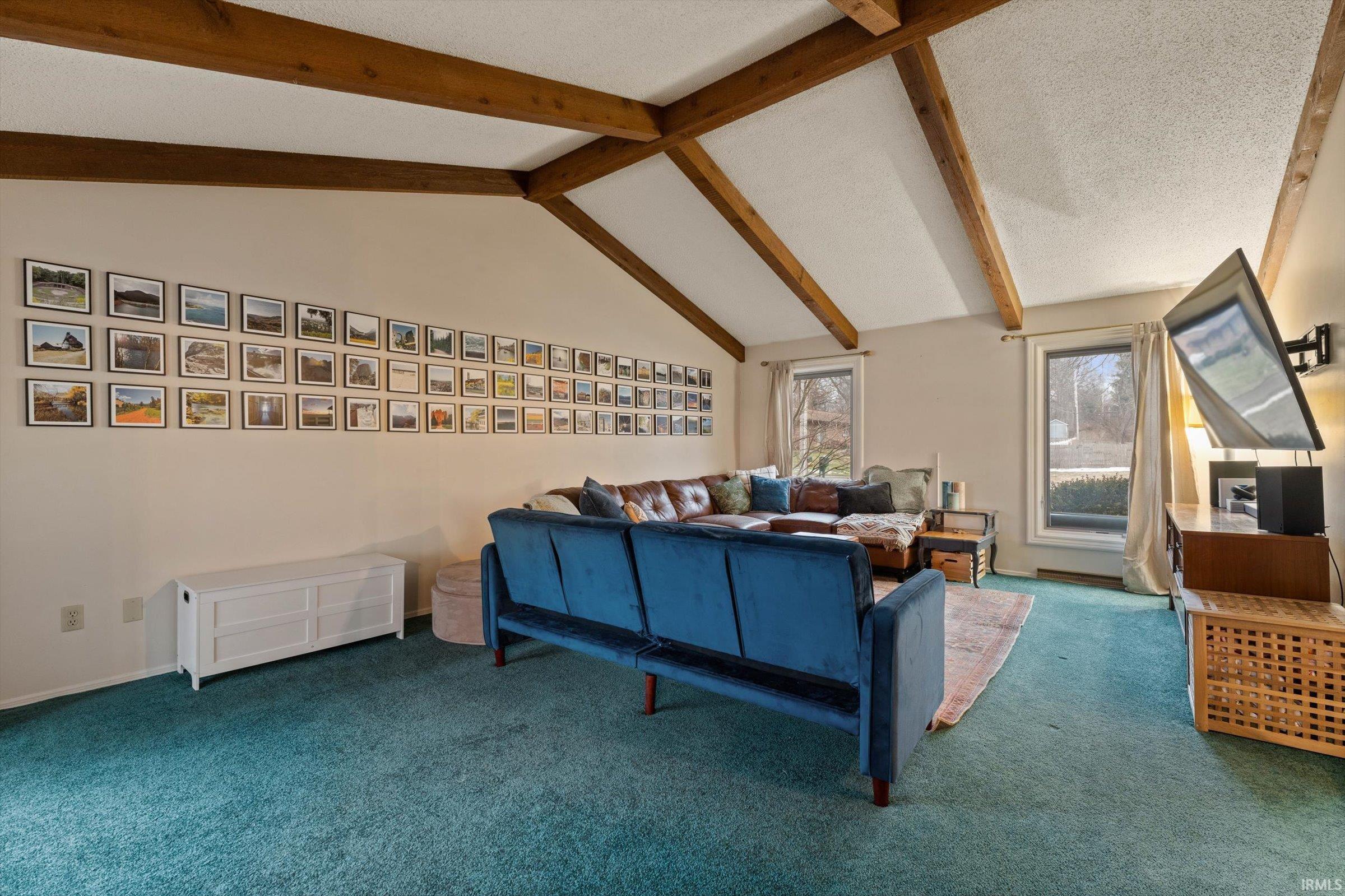 Ideally located just 1.7 miles from Notre Dame, this beautifully cared-for two-owner residence offers 4 bedrooms, 2.5 baths, and exceptional indoor-outdoor living. A brick courtyard entry welcomes you into a sunken living room with soaring vaulted, beamed ceilings. Entertain effortlessly with a formal dining room, eat-in kitchen, and inviting family room with a wood-burning fireplace. Relax in the adjacent three-season room or step onto the patio with a retractable awning overlooking the nearly half-acre, privacy-fenced backyard. Major updates include a new roof (2023) and HVAC (2020), plus Pella multi-pane windows with internal blinds. A rare opportunity in an unbeatable location. Generator ready