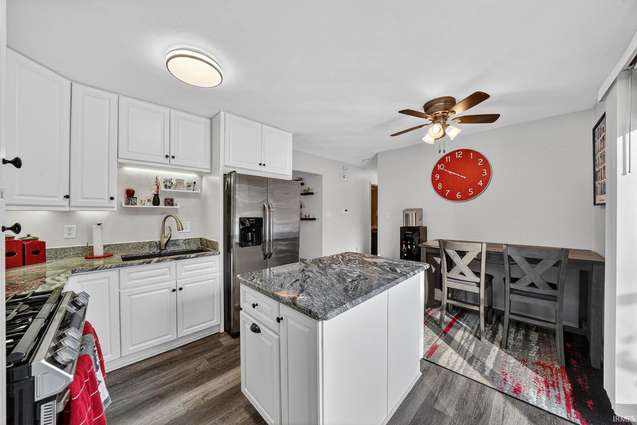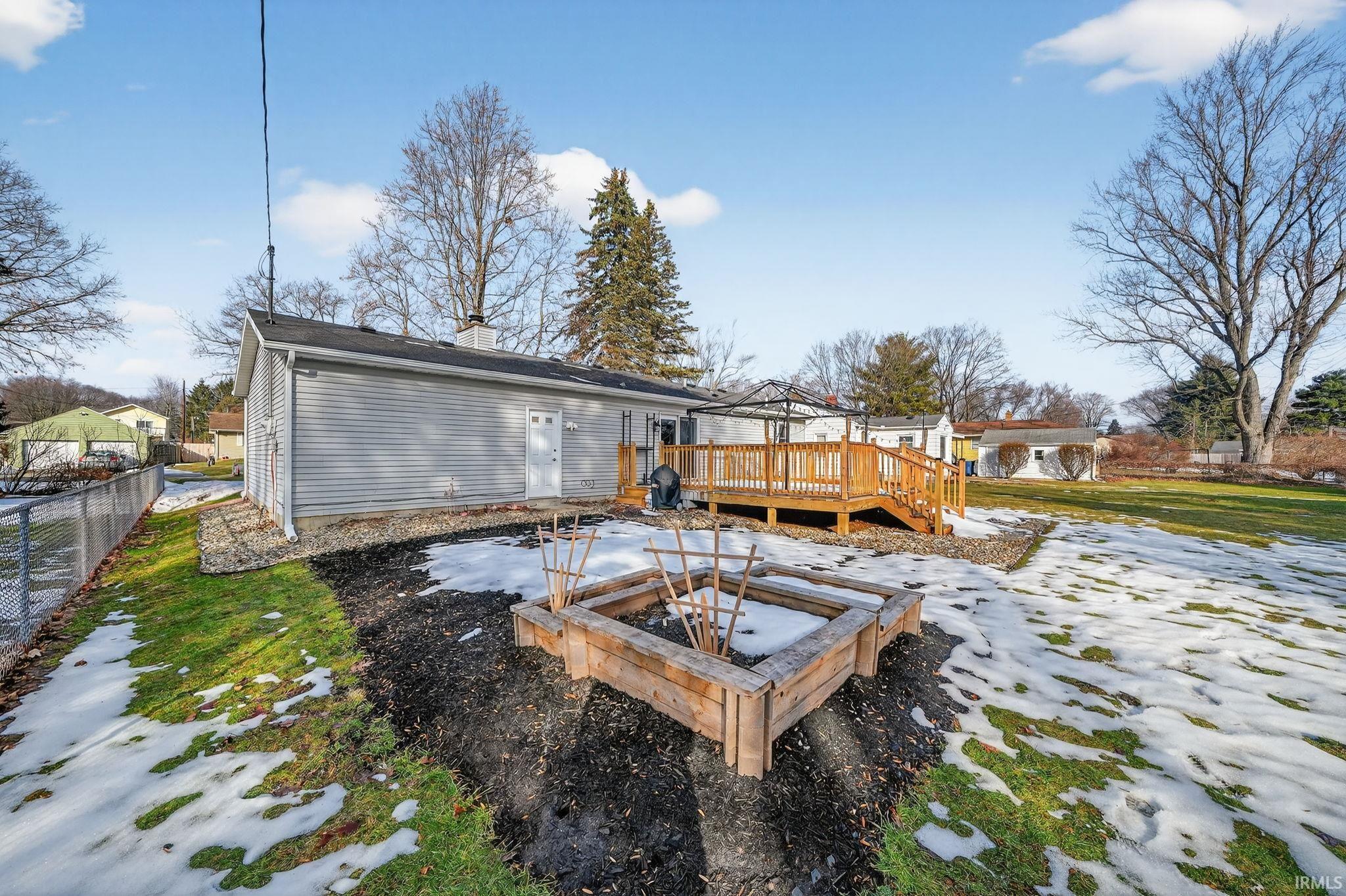 Drop your bags — you’re home! This 2-bedroom 1.5-bathroom ranch on a quiet neighborhood street within 5 minutes of Notre Dame has been completely remodeled with all new flooring, paint, a brand new kitchen, and brand new bathrooms! You’ll walk right into the cozy living room, which features a working gas-log fireplace. The eat-in kitchen has new granite countertops throughout, a touch-activated faucet, a two-basin deep sink with disposal, a newer 5-burner gas stove and microwave, and a French-door refrigerator. And when the weather is nice, open the kitchen patio doors to a huge 20’x16’ deck, perfect for summer grilling and relaxing under the 10’x13’ gazebo with canvas top and string lighting. The two main-floor bedrooms are spacious, and the primary bedroom offers a walk-in closet and an ensuite half-bathroom with new granite-countertop vanity. The main-floor full bathroom also has a new vanity with matching granite countertop and a walk-in glass shower. The basement is fully finished with room for a living area, a bar, and a workout area. The laundry — with brand-new washer and dryer — is located with the other mechanicals, but tucked behind the laundry room, you’ll find two additional rooms that could be used for storage and a private office. Furnace, water softener, gutters, and leaf guards are all new from 2025, and the water heater is new this year. Don’t miss the attached garage with work bench and built-in cabinets, the raised garden beds in the backyard, the 2024 composite 10’x10’ shed, and the river rock that’s been added throughout the landscaping. This is the move-in ready home you’ve been waiting for — don’t miss your chance to see this one before it’s gone!
