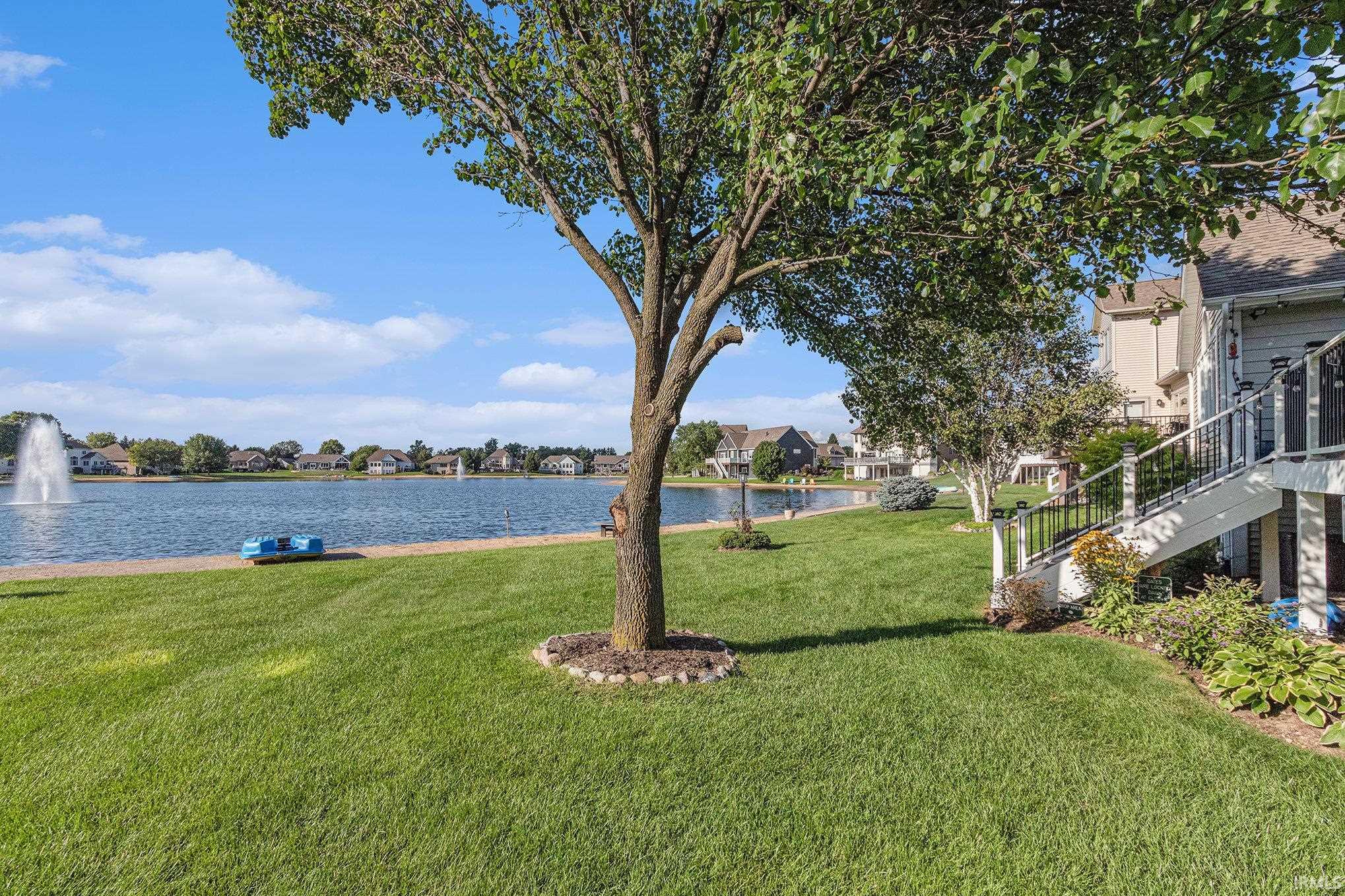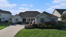 OPEN HOUSE SUNDAY 3/8 FROM 1:00-3:00. Beautifully updated 3-bedroom, 2-bathroom split floorplan villa in The Villas at Lake Blackthorn! Warm wood floors flow throughout the open concept plan, anchored by a welcoming gas fireplace. The renovated kitchen offers new custom cabinetry, stainless steel appliances, walk-in pantry, breakfast bar, and large open windows. Use the area off of the kitchen as a sunroom, dining room, or breakfast nook plus it has a bar with a wine fridge and a beverage fridge! Enjoy tranquil water views from nearly every room with a sand-lined beach in the backyard, perfect for catch-and-release fishing and paddle boating. The recently upgraded composite deck has a retractable awning with a wind sensor. The main floor includes a mudroom with laundry, a primary suite with an updated ensuite bath with large shower, dual sinks, vanity, and walk-in closet. Two additional bedrooms and a full bathroom are on the opposite wing. The basement has multiple lookout egress windows, and plumbing for a third bath, providing many possibilities. Enjoy all the conveniences of villa living with lawn and snow care included. Just minutes from the University of Notre Dame, South Bend Airport, and the South Shore train line. Schedule your showing today!