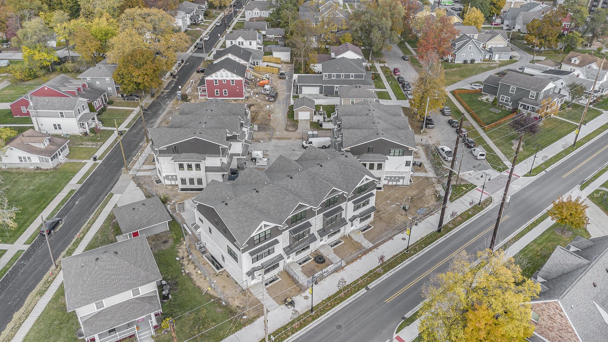 Welcome to Heritage Townhomes. This model unit offers nearly 3400 square feet of brand-new luxury construction in a gated community within walking distance of the University of Notre Dame, with no rental restrictions, and located directly along the new LINK Trail connecting Notre Dame to downtown South Bend. Designed for effortless entertaining, this four-level townhouse delivers a highly intentional layout that shines on football weekends and beyond. The street-level main floor functions as a true tailgate headquarters, featuring an attached two-car garage, a full kitchen, and a half bath—ideal for hosting before and after game day without interrupting the rest of the home. The finished lower level expands the entertainment space with a spacious recreation room, wet bar, full bathroom, and a private bedroom perfect for guests or extended stays. The second floor serves as the primary living level with a generous open-concept living room, dining area, full kitchen, and an additional bedroom with a full bath. The third floor is dedicated to privacy, offering two en suite bedrooms, each with its own full bathroom, along with a conveniently located laundry. High ceilings, quartz countertops, modern cabinetry, and designer finishes elevate the home throughout. Enjoy walkable access to campus, seamless trail connectivity to downtown, and luxury living designed to offer the best of both worlds.