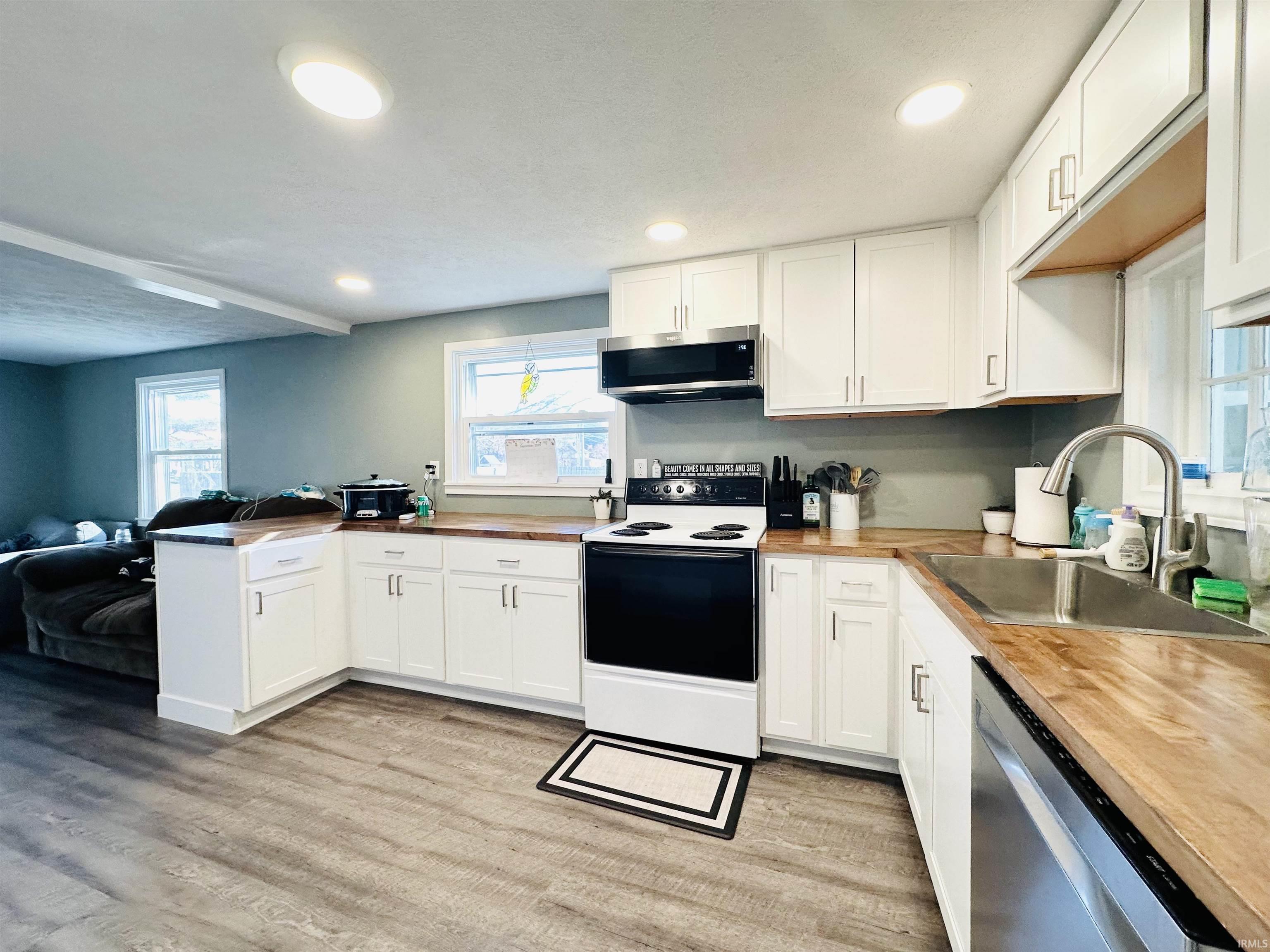 Updated ranch home in Warren Twp! Just a short drive to the new Amazon and Battery plants. Large lot(1.10 acres). The home was a 2 bedroom and could be converted back easily. Seller opened it up. All new kitchen with an open concept to the living room(2024). Nice vinyl plank flooring. Soft close doors. Built-in dishwasher and microwave. Wood countertops and can-lights. All new windows(2024). Completely updated full bath(2024). Fresh paint. Most plumbing is new. All new light fixtures. Electric baseboard heat with new thermostats, window ac units are included. New sump pump and water heater(2024). 4" well. Septic. Blacktop driveway. BONUS!- 2 detached garages(24x24, 20x18) for those cars and toys! Good starter or rental property.