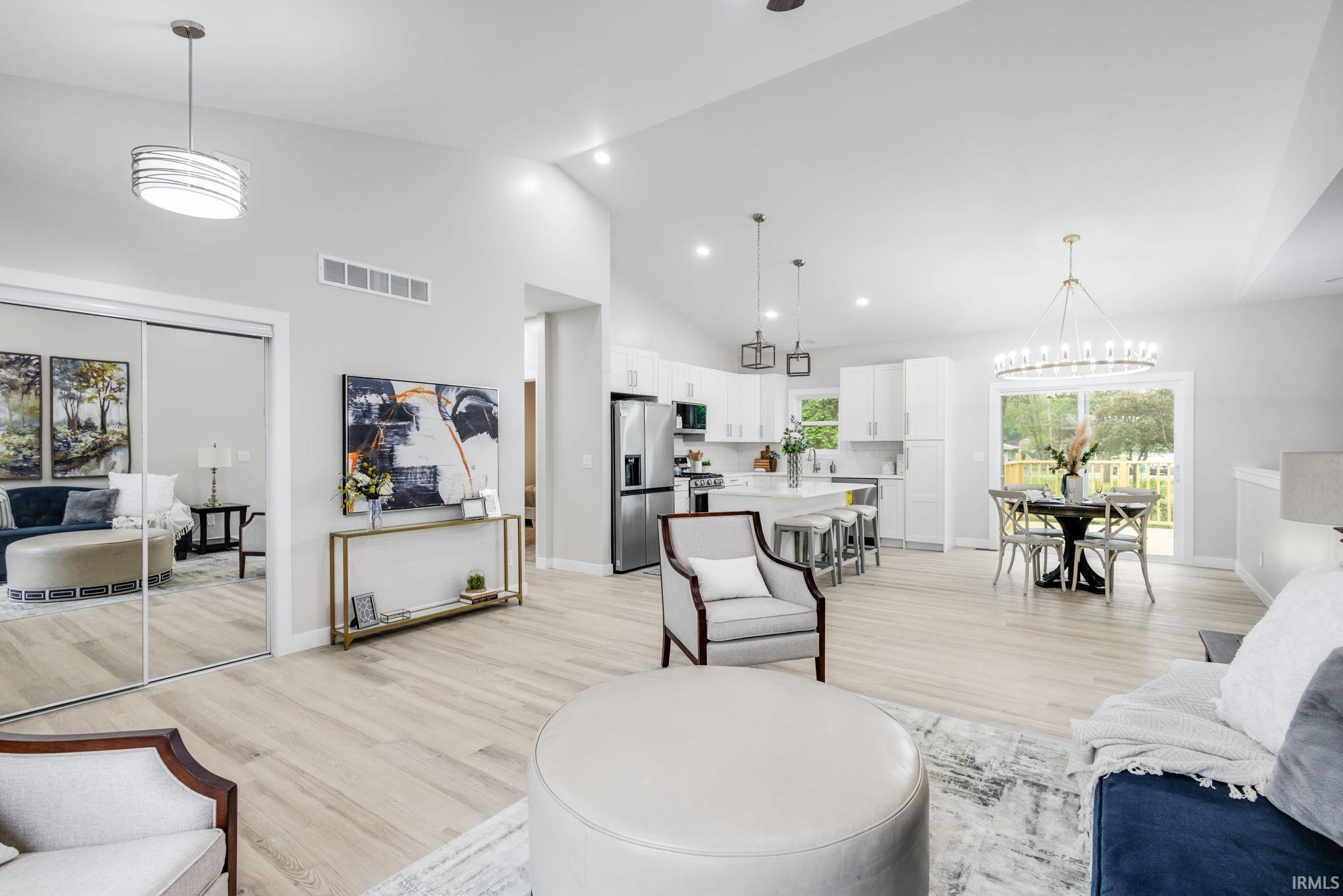 New construction and move-in ready! Welcome home to this beautifully crafted new construction ranch in the quiet Audubon Woods neighborhood. This popular split-bedroom floor plan offers generous living space and modern comfort - all just minutes from local shopping, and dining a few miles north of Notre Dame. Step into the expansive great room with soaring vaulted ceilings, perfect for relaxing and entertaining. The gourmet kitchen features a large center island with bar seating, a full stainless appliance package, and style finishes throughout. The main floor primary suite is a true retreat with a spacious walk-in closet, dual sink vanity, and a luxurious walk-in tiled shower. Two additional bedrooms and a full bath complete the main level. The finished lower level adds incredible versatility with a large recreation area and a bonus fourth bedroom and full bath - ideal for guests, a home office, or extended living space. Situated on a spacious lot, this home offers a rear deck for outdoor entertaining and a 2-car attached garage. This home won't last long so don't wait - schedule your showing today!