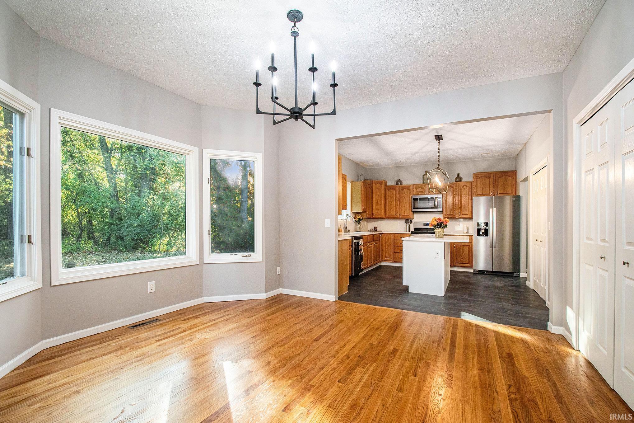 LOCATION, LOCATION, LOCATION! Less than 2 miles from the University of Notre Dame! Welcome home to this beautifully updated 3-bedroom, 2.5-bath home. Step inside and be greeted by soaring 9+ foot ceilings and hardwood floors. The heart of the home features a beautiful kitchen with new quartz countertops and backsplash, stainless steel appliances that include a new refrigerator, gas oven, microwave, and a dishwasher. The home has been freshly painted, hardwood flooring was recently sanded and stained, new LVP flooring, and carpet installed throughout. The majority of the windows have been replaced with new vinyl windows and a new electric water heater. The spacious living and dining areas make entertaining effortless, while large windows bring in plenty of natural light. Upstairs, retreat to the HUGE master suite, offering ample room for a sitting area, walk-in closet, and private bath with a jetted jacuzzi and a stand-up shower. Enjoy the outdoors on the wooden deck overlooking the wooded backyard. Broker-owned. No homestead exemption on file.