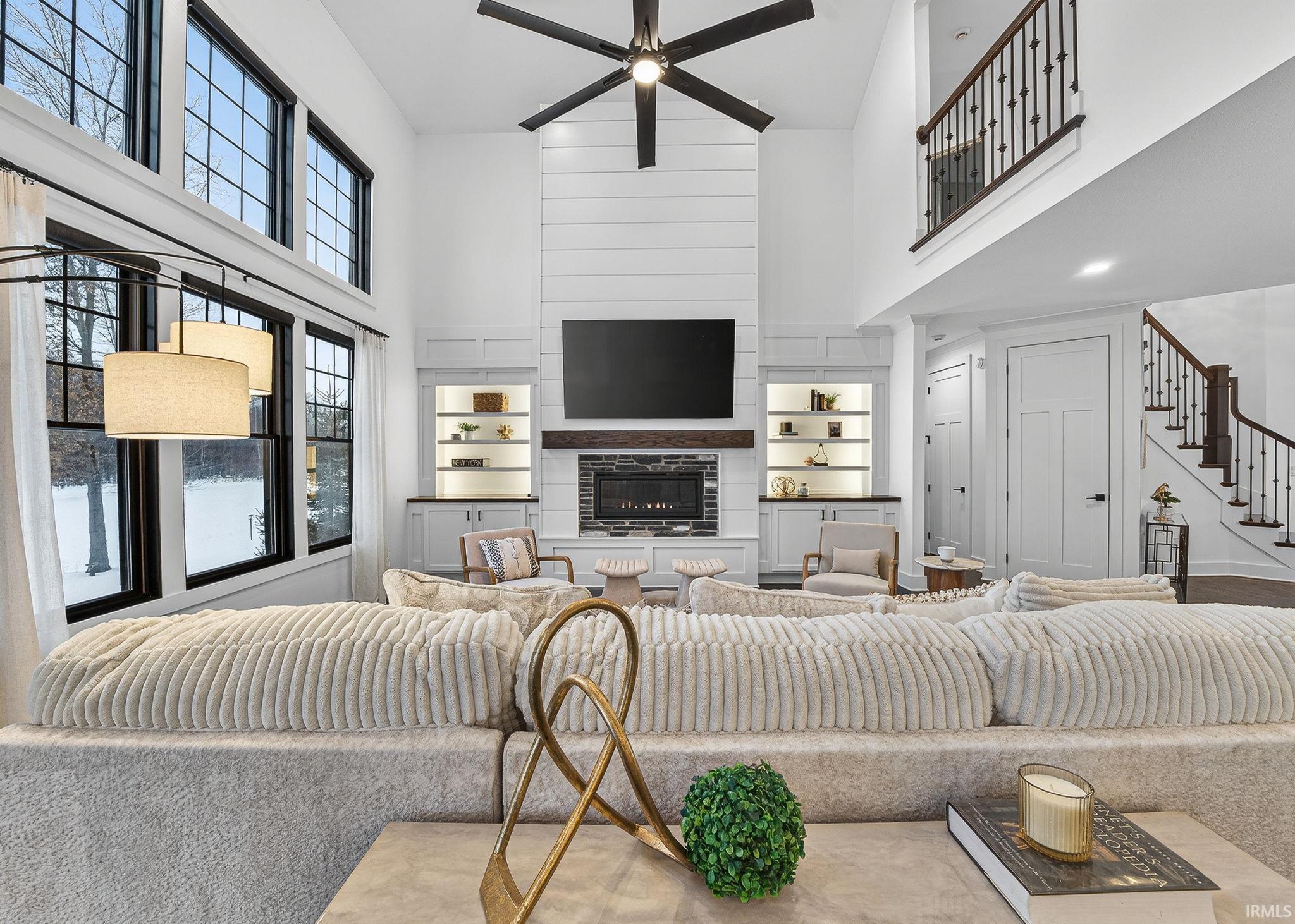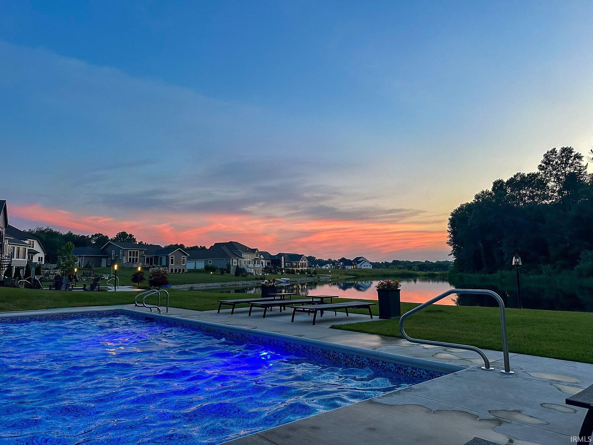 Better than new and designed to impress, this stunning five-bedroom, four-bath home offers a flowing, light-filled floor plan with breathtaking views and a pool. Soaring ceilings and walls of windows flood the home with natural light, while 8-foot doors on the main level add a sense of luxury and scale throughout. The main-floor primary suite provides a private retreat with heated bathroom floors, perfectly positioned for comfort and convenience. At the heart of the home, the oversized kitchen island anchors an open living space ideal for everyday living and entertaining alike. The walk-out lower level expands the living space even further and includes a wet bar plus a dedicated home gym perfect for today’s active lifestyle. Step outside to enjoy the inground pool and take in the expansive views of the lake and woods. Thoughtfully designed, beautifully finished, and truly move-in ready, this exceptional home offers the best of modern living with timeless appeal. Bradford Shores is conveniently located moments from Notre Dame, shopping, dining, and the toll rd. it also offers municipal utilities.