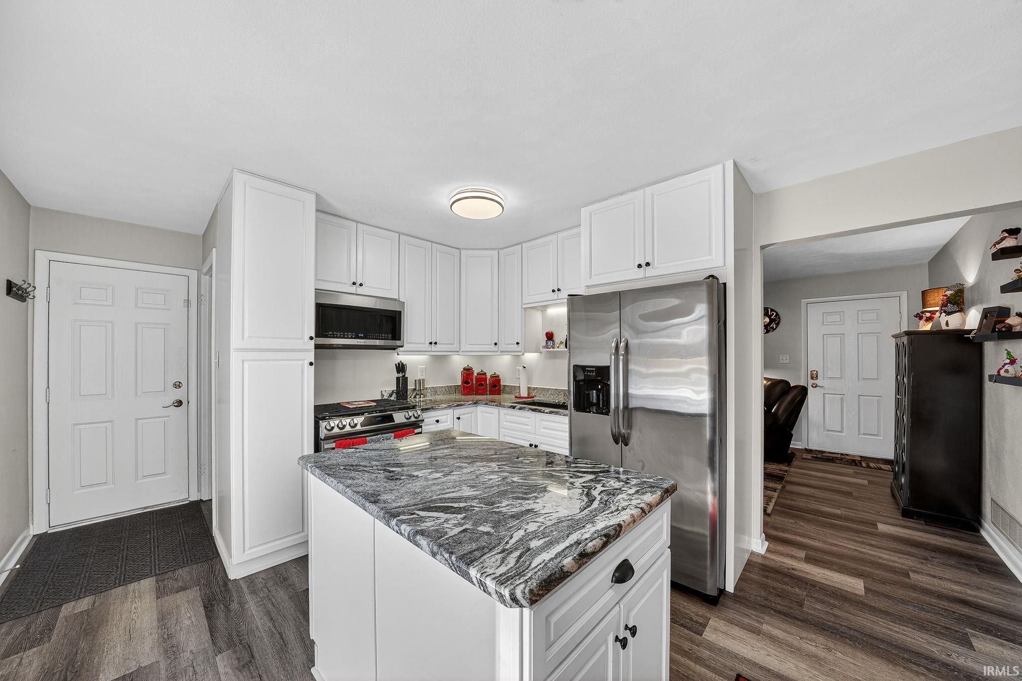 Drop your bags — you’re home! This 2-bedroom 1.5-bathroom ranch on a quiet neighborhood street within 5 minutes of Notre Dame has been completely remodeled with all new flooring, paint, a brand new kitchen, and brand new bathrooms! You’ll walk right into the cozy living room, which features a working gas-log fireplace. The eat-in kitchen has new granite countertops throughout, a touch-activated faucet, a two-basin deep sink with disposal, a newer 5-burner gas stove and microwave, and a French-door refrigerator. And when the weather is nice, open the kitchen patio doors to a huge 20’x16’ deck, perfect for summer grilling and relaxing under the 10’x13’ gazebo with canvas top and string lighting. The two main-floor bedrooms are spacious, and the primary bedroom offers a walk-in closet and an ensuite half-bathroom with new granite-countertop vanity. The main-floor full bathroom also has a new vanity with matching granite countertop and a walk-in glass shower. The basement is fully finished with room for a living area, a bar, and a workout area. The laundry — with brand-new washer and dryer — is located with the other mechanicals, but tucked behind the laundry room, you’ll find two additional rooms that could be used for storage and a private office. Furnace, water softener, gutters, and leaf guards are all new from 2025, and the water heater is new this year. Don’t miss the attached garage with work bench and built-in cabinets, the raised garden beds in the backyard, the 2024 composite 10’x10’ shed, and the river rock that’s been added throughout the landscaping. This is the move-in ready home you’ve been waiting for — don’t miss your chance to see this one before it’s gone!