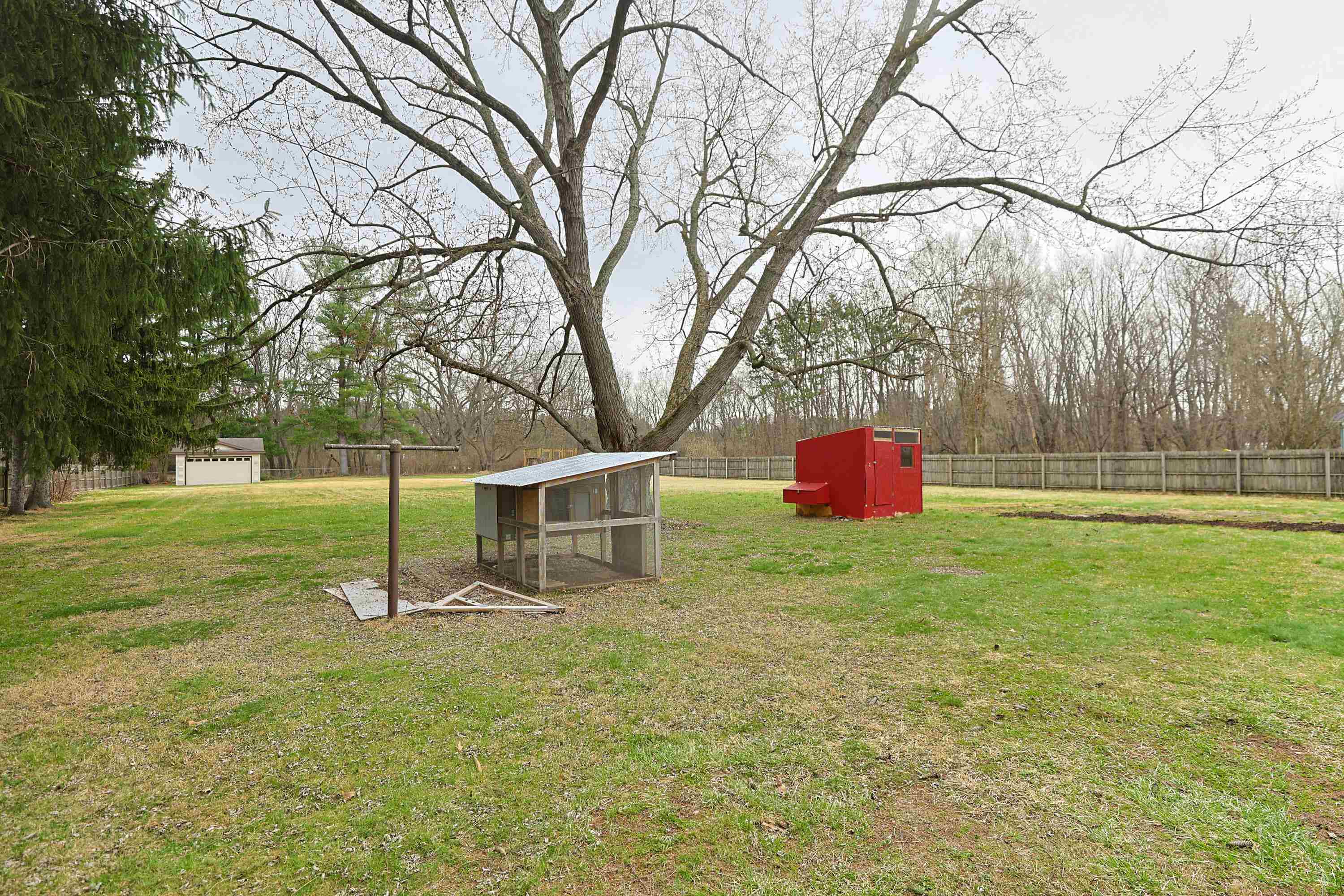 AGENT READ REMARKS!!! Sitting on 1.21 acres, this property offers the perfect blend of space, privacy, and comfortable living. The home features 1,600 sq. ft. of living space with three generously sized bedrooms and one large bath. The Great Room is a standout—bright and inviting—with a large picture window overlooking your acreage and fireplace. The kitchen includes newer appliances, and the home has real hardwood floors that simply need resurfacing to shine again. A mudroom provides excellent potential for adding a second full bath or half bath if desired.A breezeway offers a charming spot to enjoy summer evenings, and the oversized deck extends your outdoor living space. The property also includes a two-car detached garage & 1 car attached garage, garden area, and outbuildings ideal for chickens or hobby farming. Major updates include a 12-year-old roof with plenty of life remaining, plus a new well and septic system installed just over a year ago. The home is priced to sell--with room for a little TLC to make it your own. Fenced in yard. Buying agent verify measurements and schools.