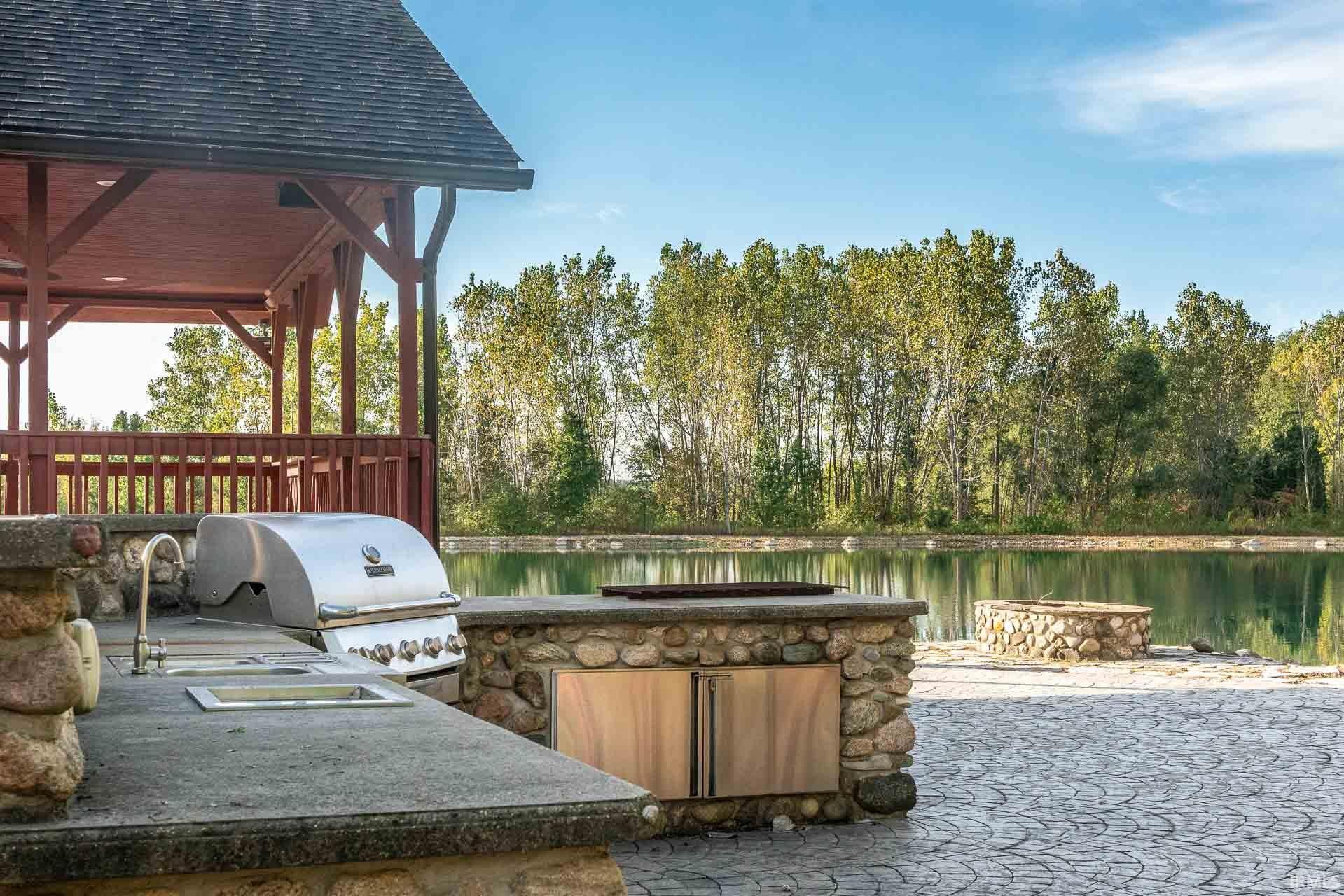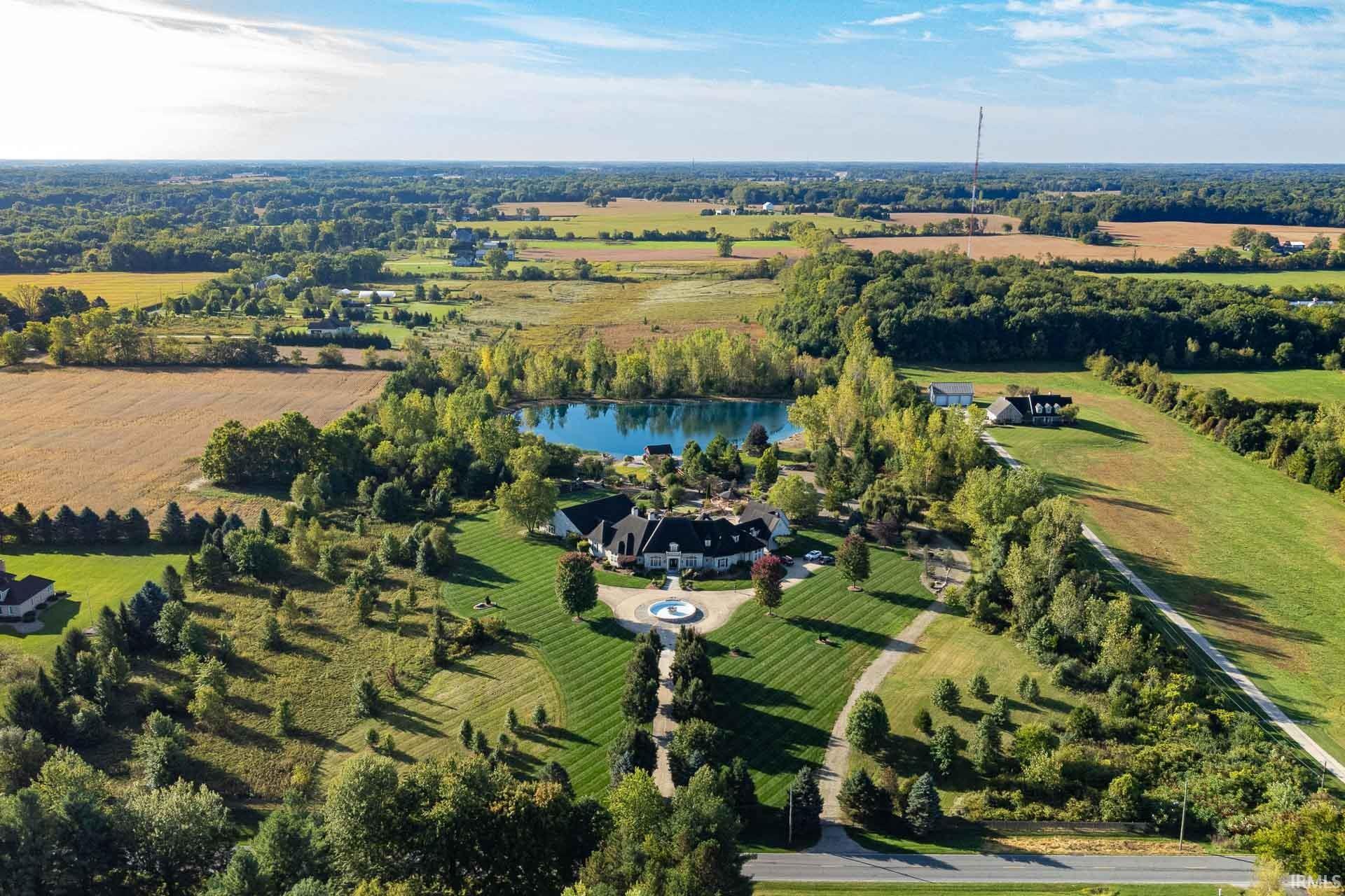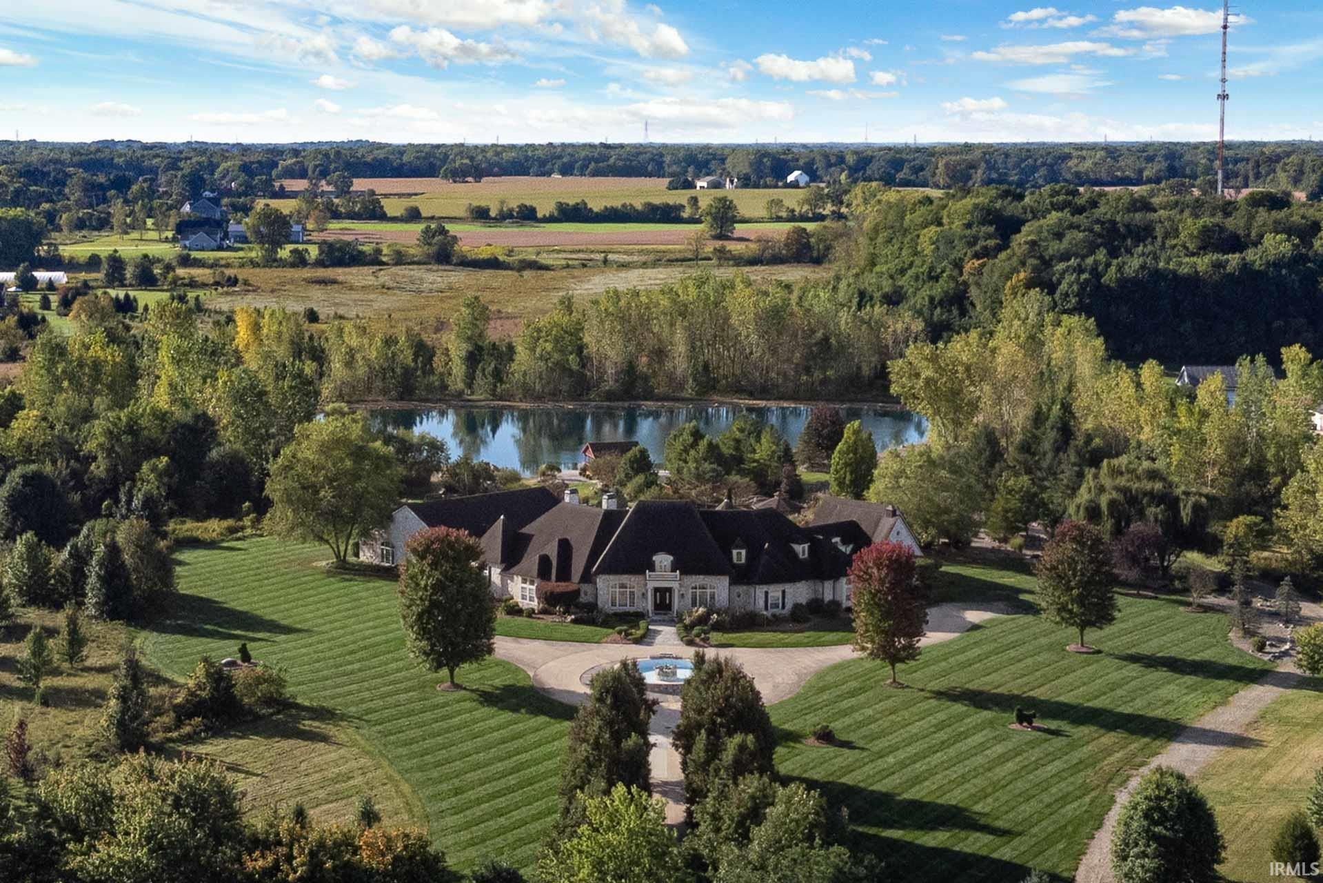 Discover this extraordinary custom-built estate set back on 20 private acres with a lake. This home offers an extensive list of luxury amenities, including five ensuite bedrooms, five fireplaces, an indoor pool complex, a golf simulator area, and even a duckpin bowling alley. The main level welcomes you with vaulted ceilings, natural light, rich wood flooring with inlay detail, custom built-ins and beautiful arches. Four main-level ensuite bedrooms include a spa-like primary suite with steam shower, jetted tub, double-sided fireplace, and massive walk-in closet. The kitchen is designed with serious cooking in mind and includes a Sub-Zero refrigerator, Viking double ovens with warming drawer, JennAir gas cooktop and sunny eat-in breakfast area. The lower level includes a variety of recreation spaces, including a billiards area, salon with full bath, exercise room, sunken media room with coffered ceilings, and kitchenette. Don’t forget to check out the bowling alley! The upper level offers a beautiful sunlit bonus room, beverage area, and a fifth ensuite bedroom with its own sitting room and private entrance from the garage. A rare indoor pool wing features a plaster pool with 9ft deep end, diving board, sauna, changing rooms, and golf simulator with 10-ft ceilings, making this entire wing feel like your own private wellness retreat. The retreat-like feel extends outside with a stocked 2.5-acre lake, a pavilion, a gazebo, a putting green, and room to roam. Additional perks include a 4-car heated garage, irrigation system, long tree-lined drive, and beautifully manicured grounds.