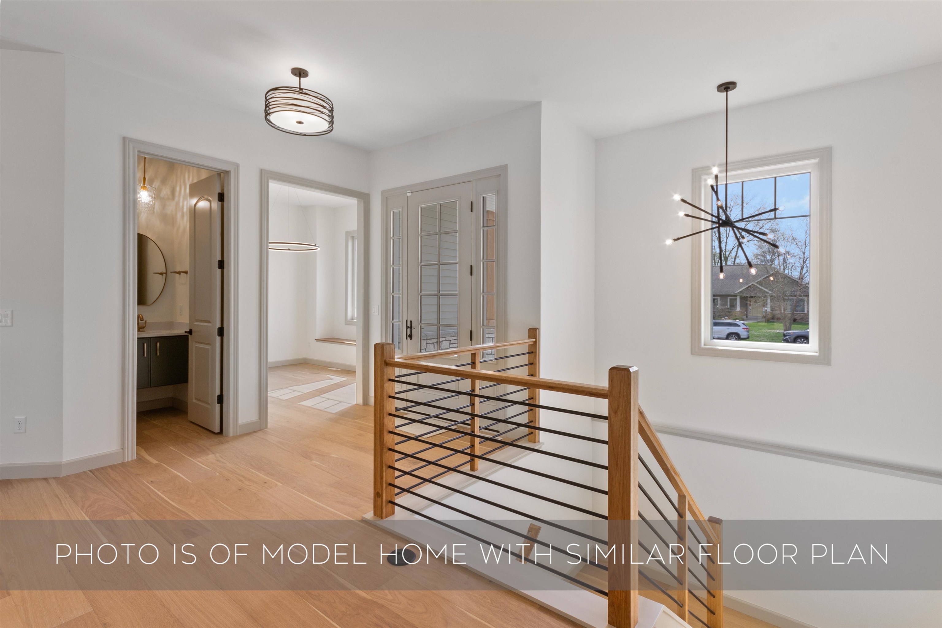 Wooded Hilltop New Construction in Fernwood at Cleveland | Set on a beautifully wooded homesite in Fernwood at Cleveland, this thoughtfully designed new construction home by award-winning Devine Homes by Miller offers privacy, space, and modern craftsmanship in one of South Bend’s most scenic settings featuring views of campus from November - March. A turnaround driveway and side-load garage create striking curb appeal while maintaining the natural beauty of the lot. Inside, the open-concept main level is designed for comfortable living and effortless entertaining. The great room features a gas fireplace and flows seamlessly into the dining area and spacious kitchen with a large center island, walk-in pantry, and easy access to outdoor living spaces overlooking the wooded surroundings. Beautiful engineered hardwood floors throughout the main level. A private office near the foyer provides the perfect work-from-home space. The primary suite is privately positioned and features a large walk-in closet and spa-inspired bath with soaking tub and walk-in tile shower, walk-in closet, and connected laundry room. Two additional bedrooms each offer walk-in closets and en suite bathrooms. The walkout lower level significantly expands the living space and is fully finished with 9’ basement walls, a large recreation room with a 50" electric fireplace, wet bar with wine/beverage cooler, exercise room, additional bedroom, and full bath - perfect for entertaining, guests, or game day gatherings. With its elevated wooded setting, walkout design, and thoughtfully finished lower level, this home offers the perfect blend of nature, privacy, and modern living on South Bend’s north side.