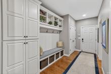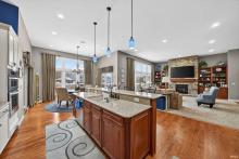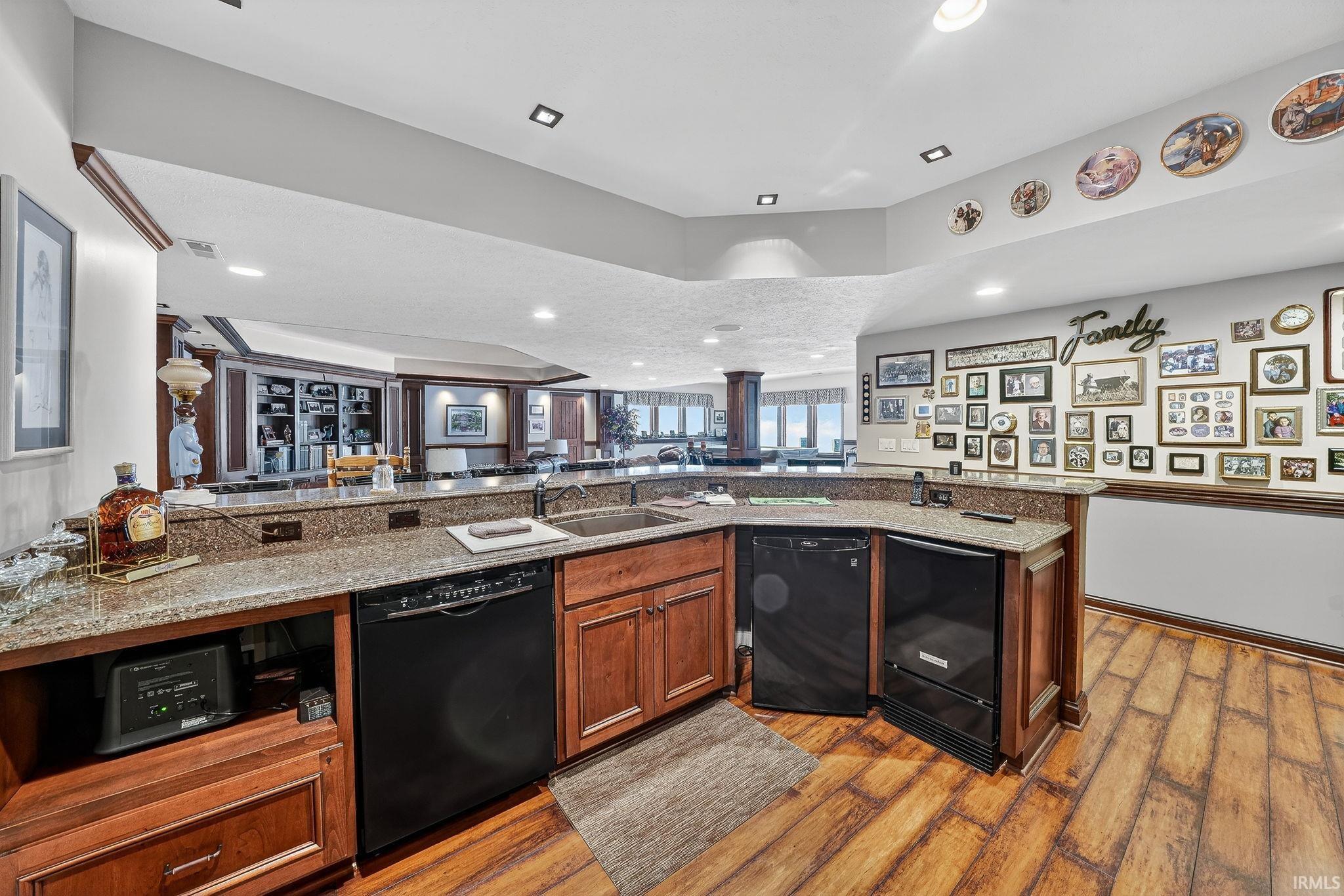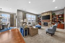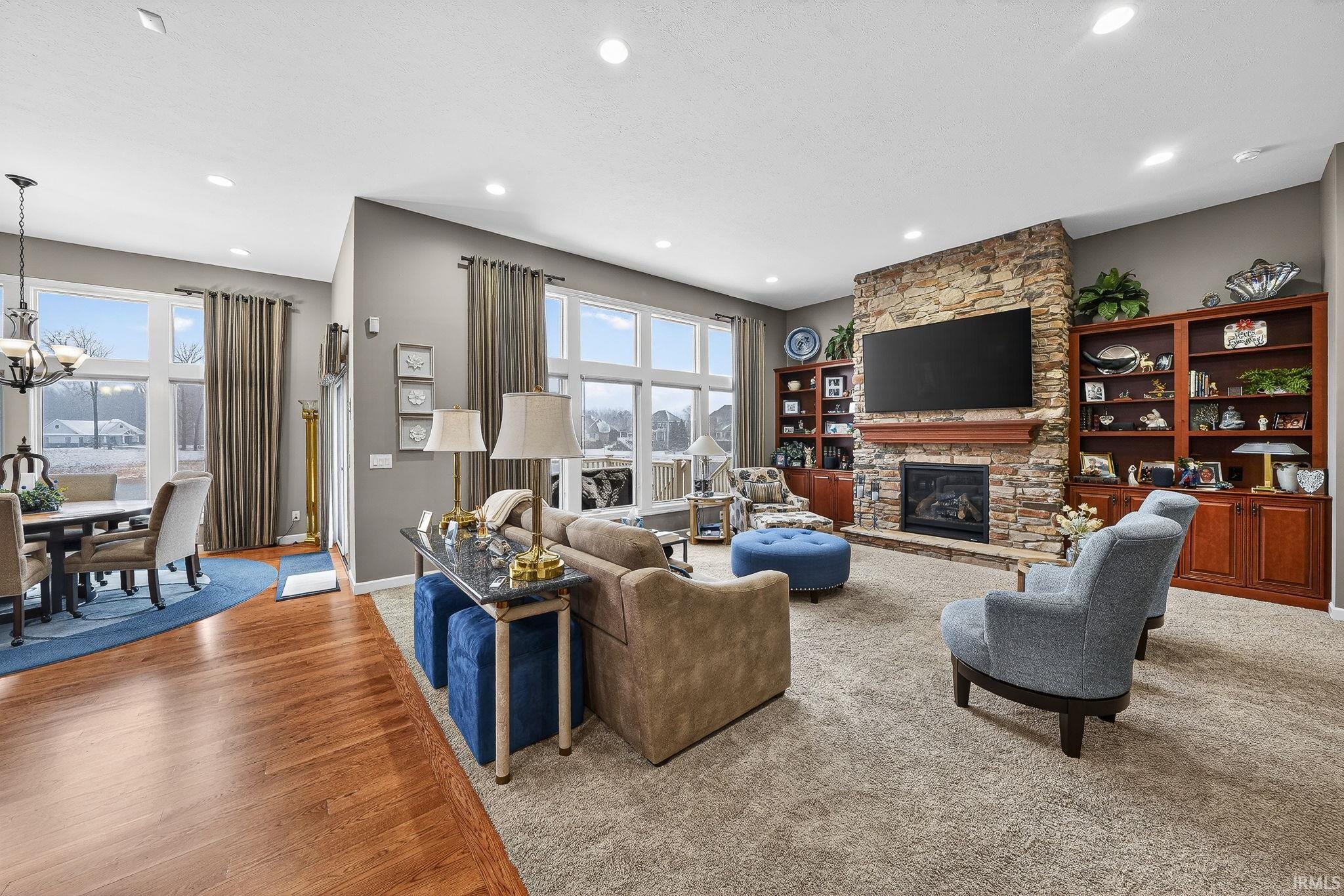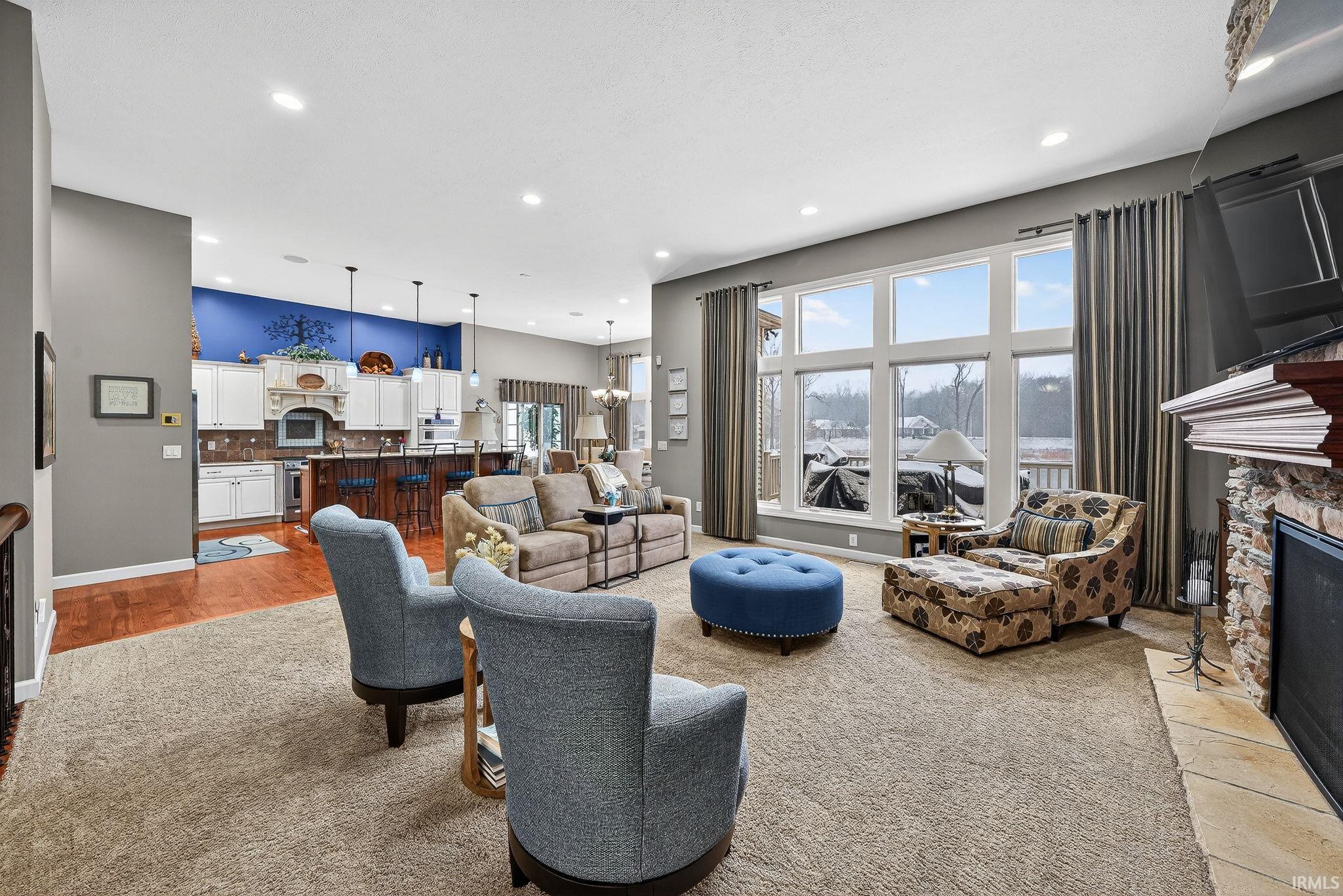 Stunning custom ranch by Nugent Builders in Bradford Shores with beautiful lake views! This brick and stone home offers high-end finishes, 11–12 ft ceilings, and hardwood floors. Open-concept great room flows to a gourmet kitchen, sunroom, and Trex deck overlooking the water. Split floor plan features a luxurious primary suite with tray ceiling, spa-like bath, soaking tub, walk-in shower, and oversized closet. Two additional bedrooms, shared bath, formal dining, and office with water views. Finished walkout lower level includes theater, game area, custom bar, bedroom, and full bath. Smart audio/video by Allegra. Minutes to Notre Dame and Knollwood Country Club.