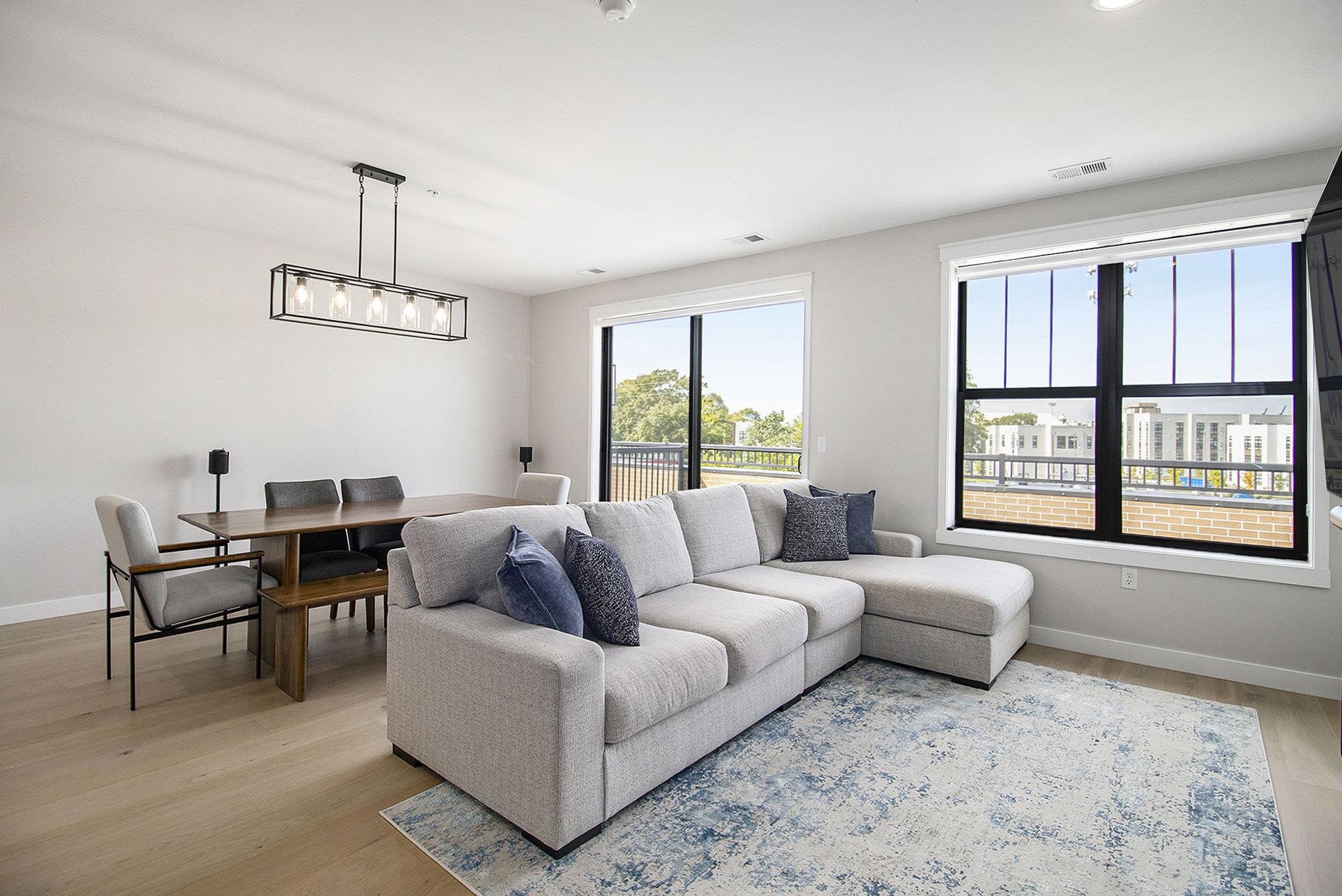 LAST REMAINING CONDO IN IRISH QUARTER WEST! Luxury Condos Steps from Notre Dame! Irish Quarter is growing with an additional condo building with first floor retail space! This premier condo development blends modern elegance with an unbeatable location - you're practically living on campus in a vibrant community. This 3 bedroom, 2.5 bath unit boasts expansive windows that flood the space with natural light. Enjoy a very functional and expansive great room with cozy gas fireplace and a slider to the sprawling terrace with Golden Dome views! You'll love the sleek kitchen with quartz countertops, large island with waterfall countertops, stainless steel appliances, walk-in butler's pantry, and beverage bar with bev fridge. Primary bedroom wing offers private sleeping quarters separate from the large walk-in closet and bath. 2 additional bedrooms share a full bath. Large in-unit laundry room. This is a perfect spot for game day or year-round living. And for the ultimate in luxury, residents can retreat to the expansive rooftop deck and party room in Irish Quarter East. Take in breathtaking views of Notre Dame Stadium, Touchdown Jesus, and the iconic Golden Dome. No short-term rental restrictions! One reserved parking spot in parking lot. HOA includes: Snow Removal, Landscaping, Access to rooftop and party room.